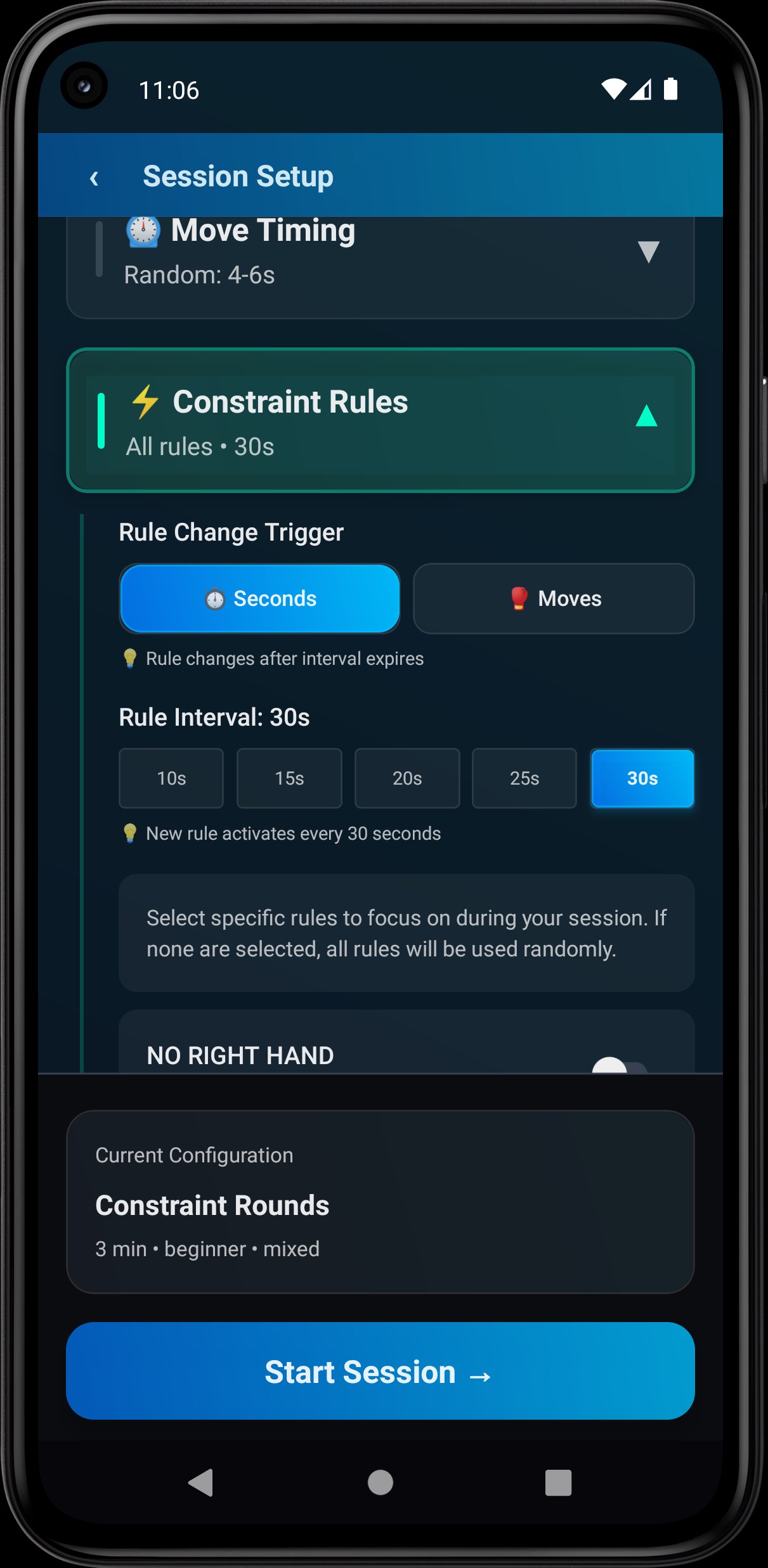 • Round builder for multi-round sessions with custom rest