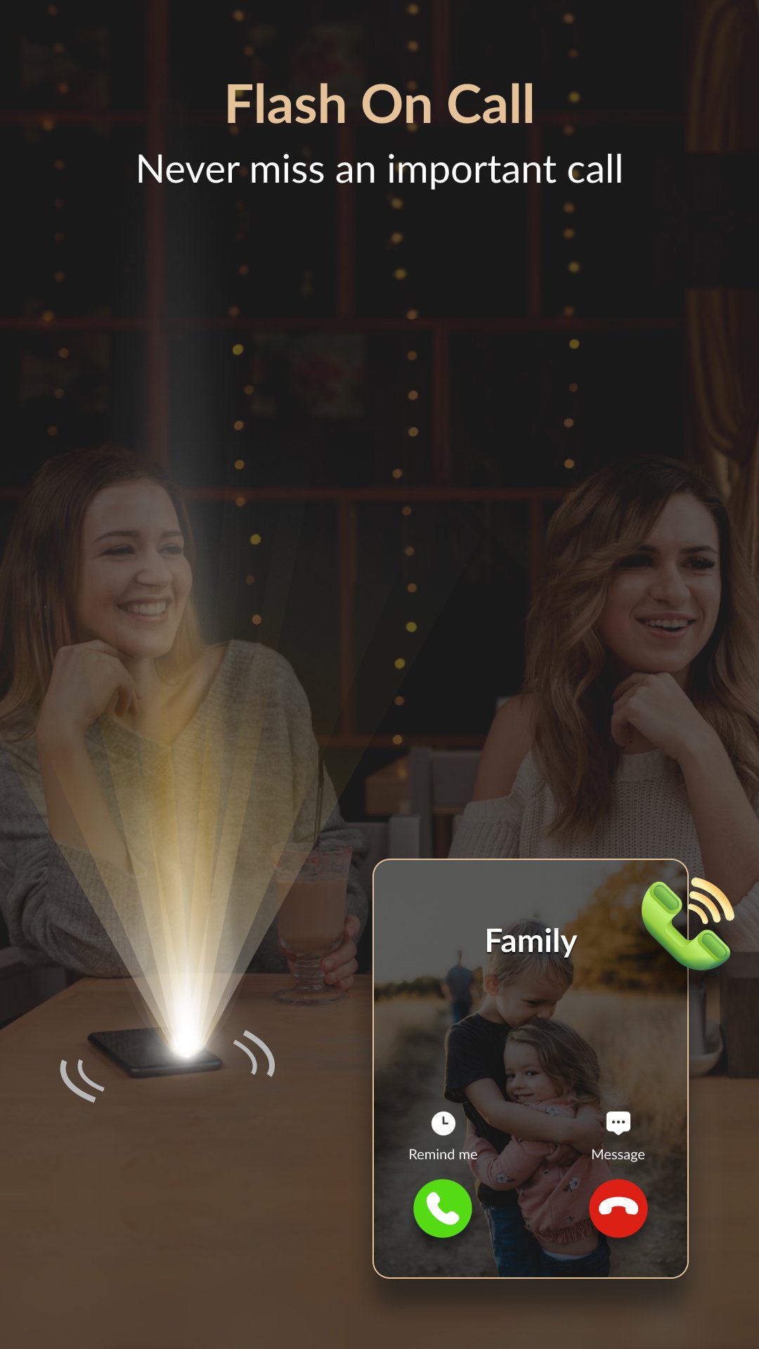• Functionality: Activate the flash for incoming calls.