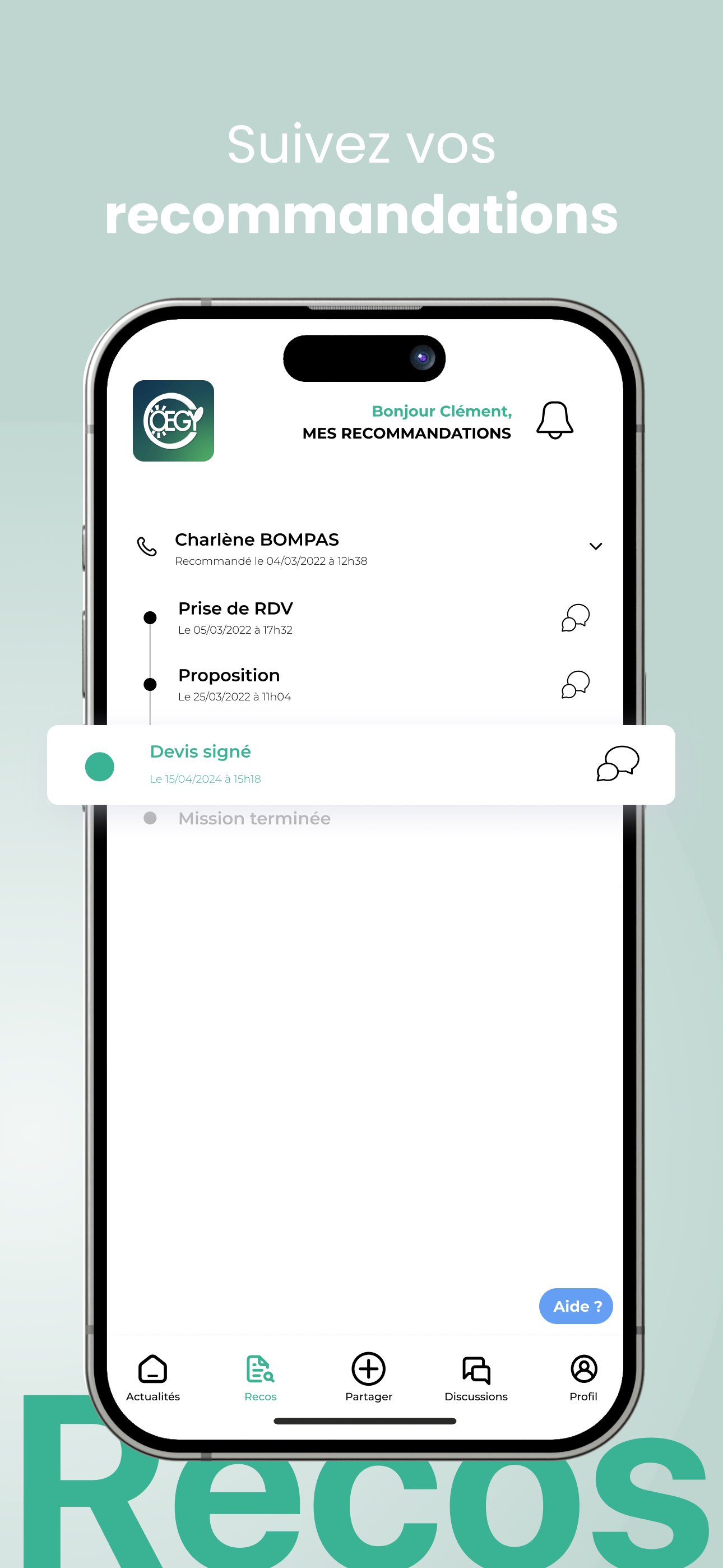 Monitor the status of your recommendations in real time and transparently from the “Recos” tab.