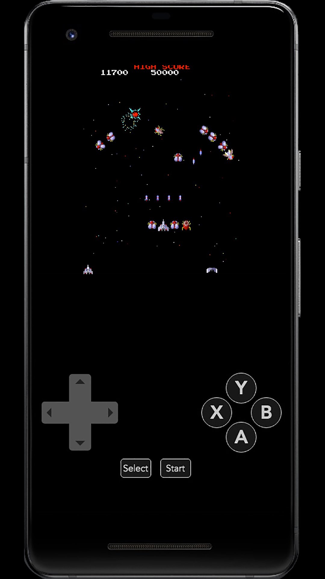A direct sequel to Galaga. The objective is to score as many points as possible by defeating successive waves of enemies in levels called "Parsecs". Its core gameplay is very similar to Galaga: Enemies fly onto the screen in rows and join a formation near the top, then begin attacking the player's ship with kamikaze-like dives. The ship can move left and right, as well as vertically. Bonus lives are earned at certain score intervals, and can also be gained by collecting ship parts dropped by some enemies, as well as collecting Rally-X bonus flags from shooting stars. The player loses a life when struck by an enemy or one of their shots; the game ends when all lives are lost.