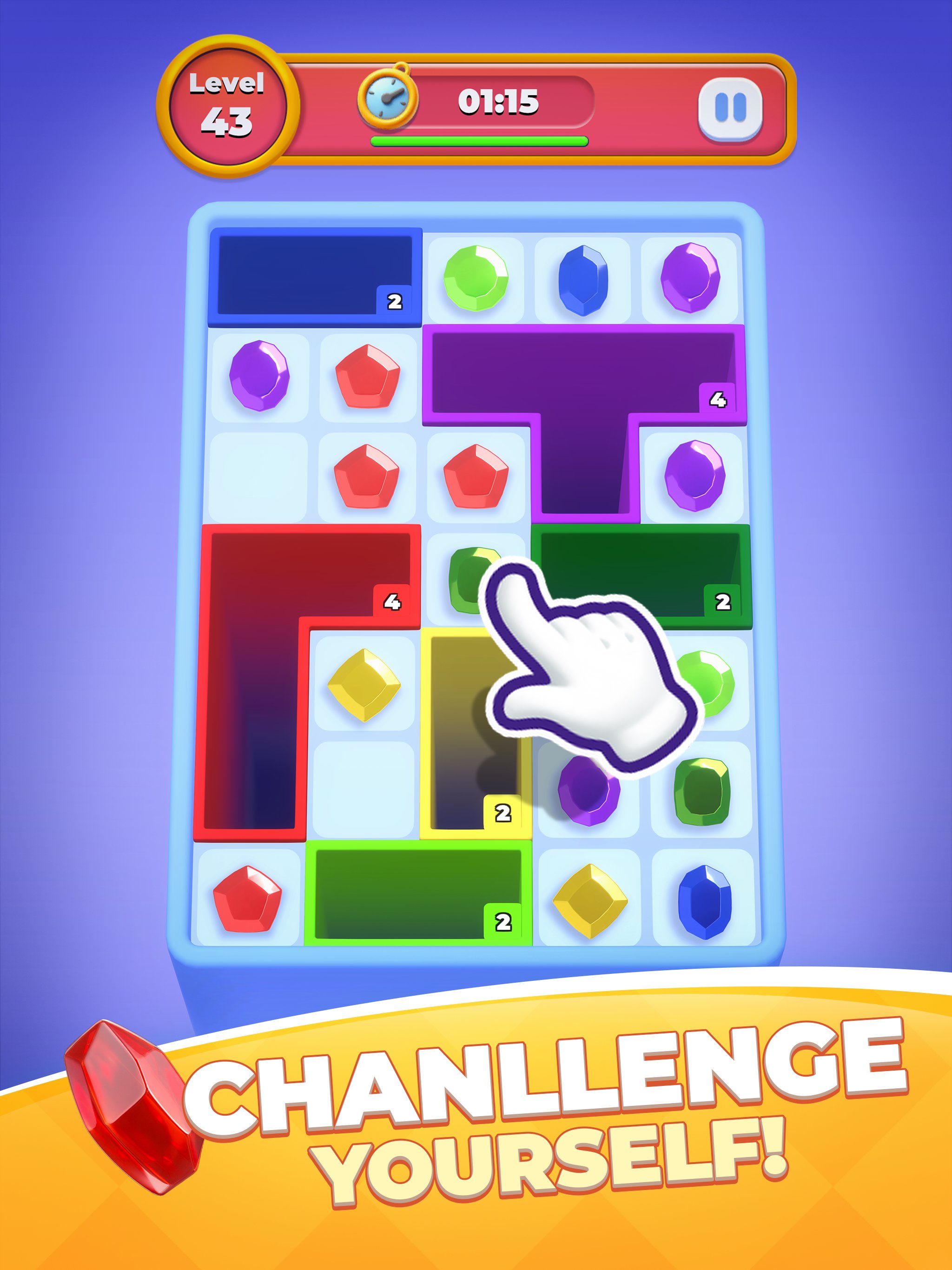 Unique Puzzle Mechanics: A creative mix of block puzzles and gem-matching gameplay.