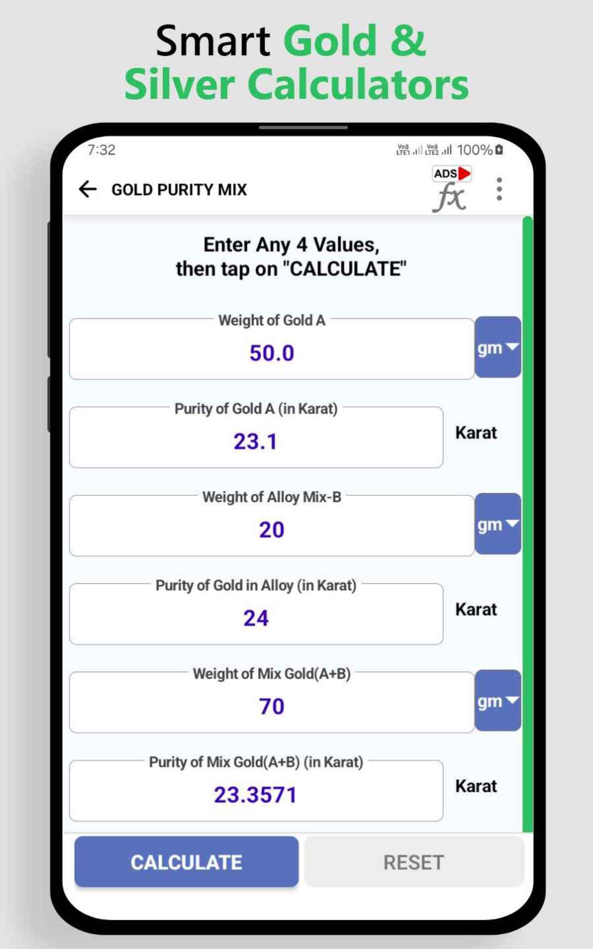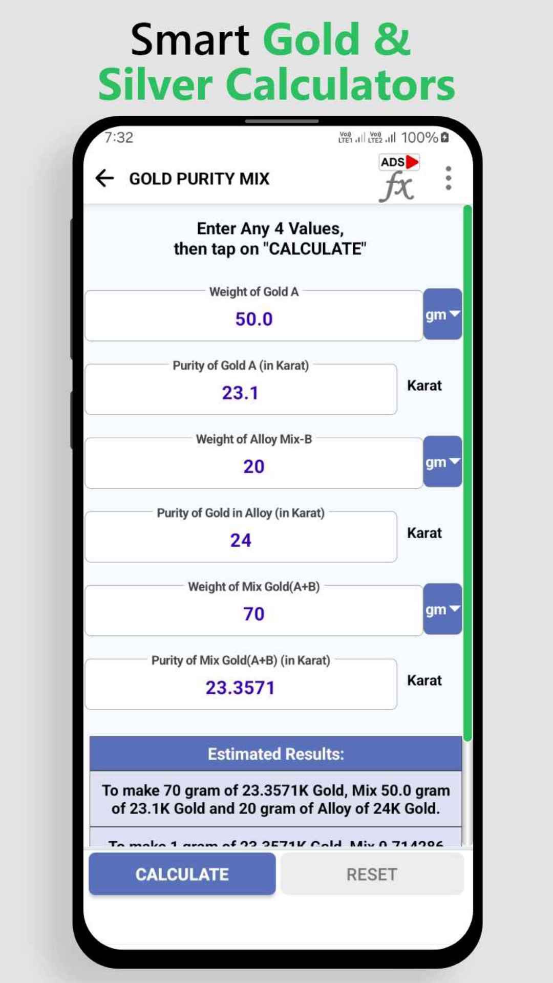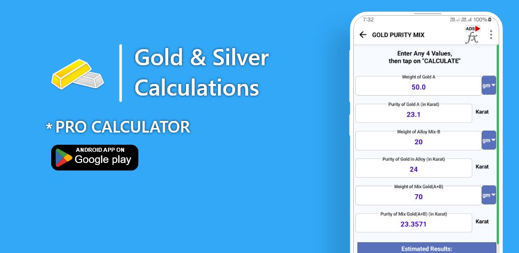 ✔ All-in-One Tool: Covers all essential calculations, including Gold Jewelry Costs, Gold Karat Mixing, and Scrap Silver Purity.