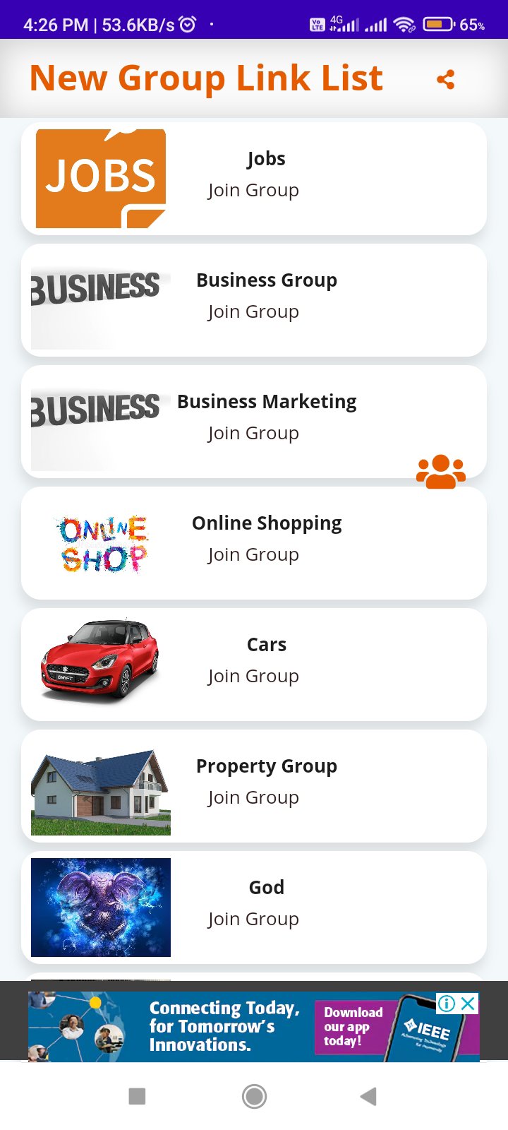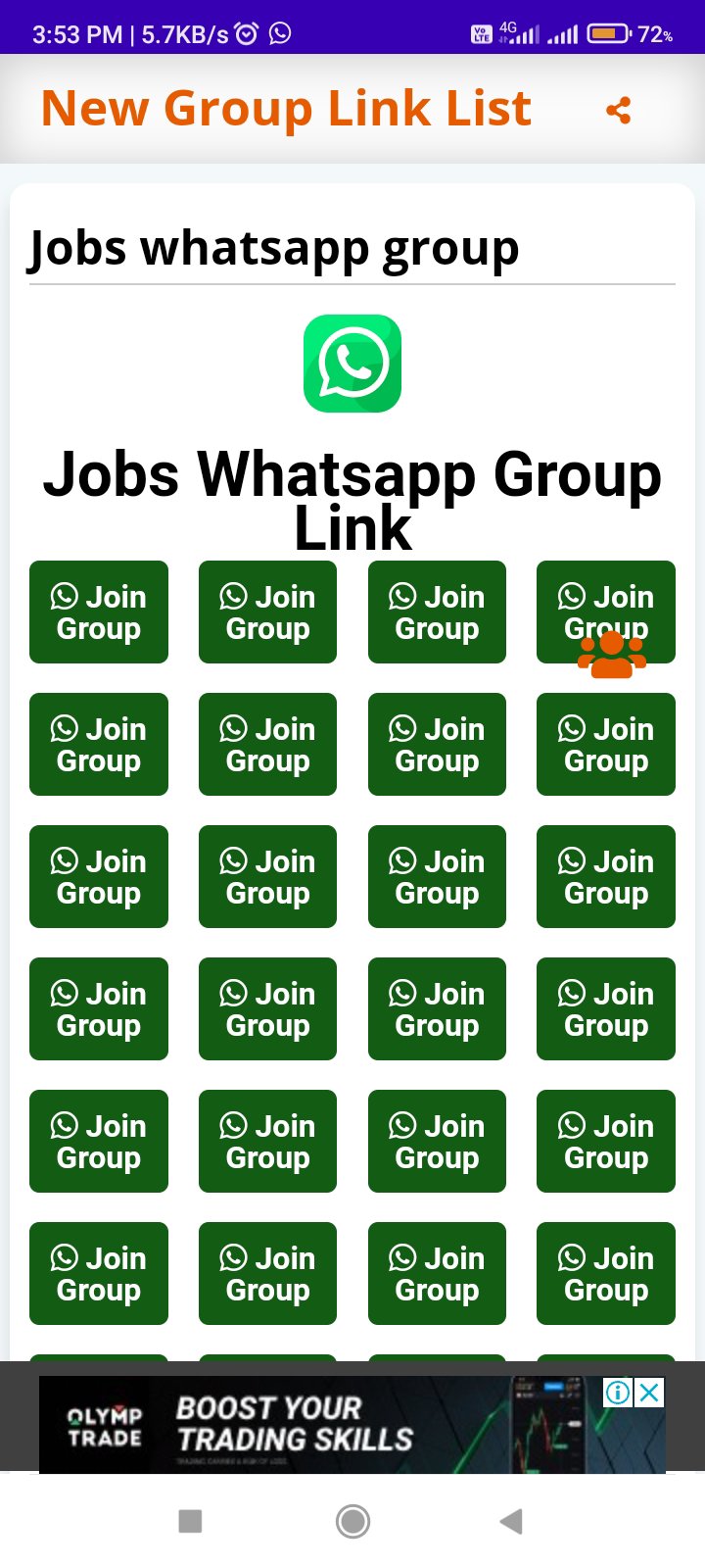 Here you can join unlimited Whatsapp groups for free ex - Cars , Property , Games , Friends etc.