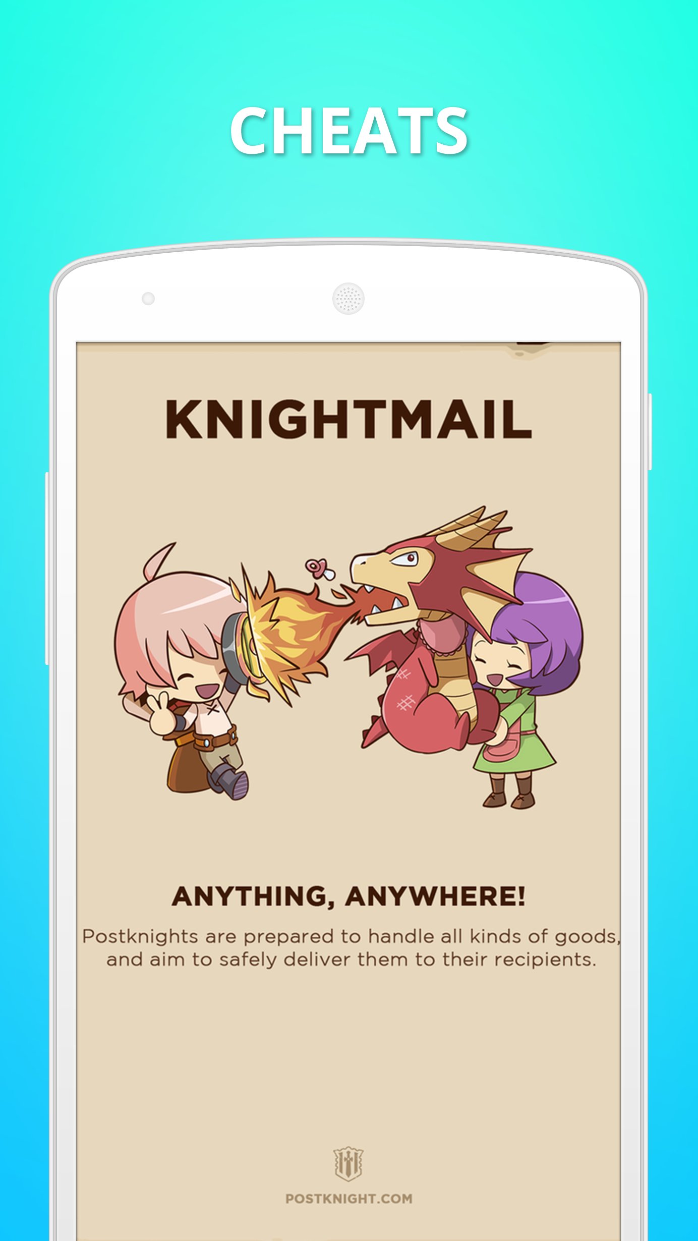 Guide for Postknight will help you to manage your game account and improve fast! With many great tips, tricks cheats this application will help you to be a king of the game! Download it and read carefully all steps from application. After a while you will see how your account will become stronger and bigger and you as a player will become a powerful ally for everyone in this game.
