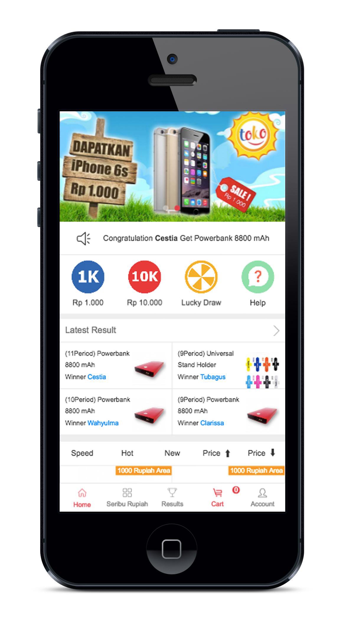 Kalian mungkin bisa mendapatkan iPhone X dengan Rp 1.000! Kami membagi 1 item menjadi beberapa bagian yang sama, masing-masing diberi harga Rp 1.000 dan memiliki nomor unik, ketika sudah mencapai target, sistem akan mencari tahu sejumlah pemenang dengan rumus (Anda dapat memeriksanya di situs kami), kalian akan mendapatkan produk jika kalian memiliki nomor unik