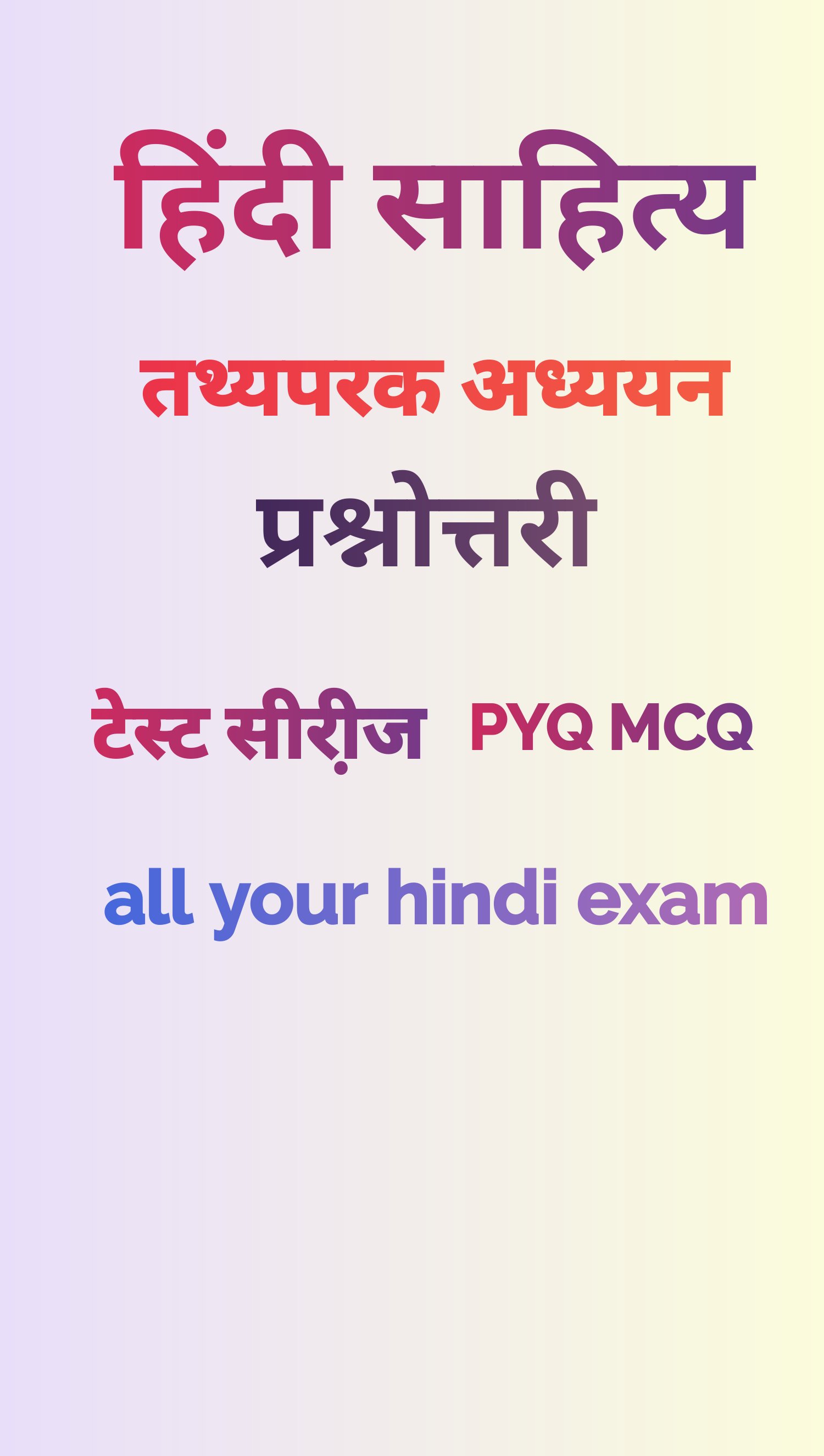 "Hindi Academy Ap" इस ऐप के माध्यम से आप हिंदी साहित्य के महत्वपूर्ण तथ्यों को जान सकेंगे। तथ्यपरक अध्ययन के साथ आप हिंदी साहित्य के विभिन्न प्रतियोगी परीक्षाओं की तैयारी करने के लिए PYQ और MCQ के माध्यम से अपने विषय ज्ञान को परीक्षा की दृष्टि से समृद्ध और अद्यतन बना सकेंगे । इस ऐप में टेस्ट सीरीज PYQ, MCQ और Quize के साथ लाइव क्लास की भी सुविधा मिलेगी। साथी हिंदी साहित्य से संबंधित पीपीटी ई- बुक भी उपलब्ध कराया जाएगा । आपकी प्रतियोगी परीक्षा की तैयारी तथा ज्ञान वृद्धि में "Hindi Academy Ap" आपके साथ है।