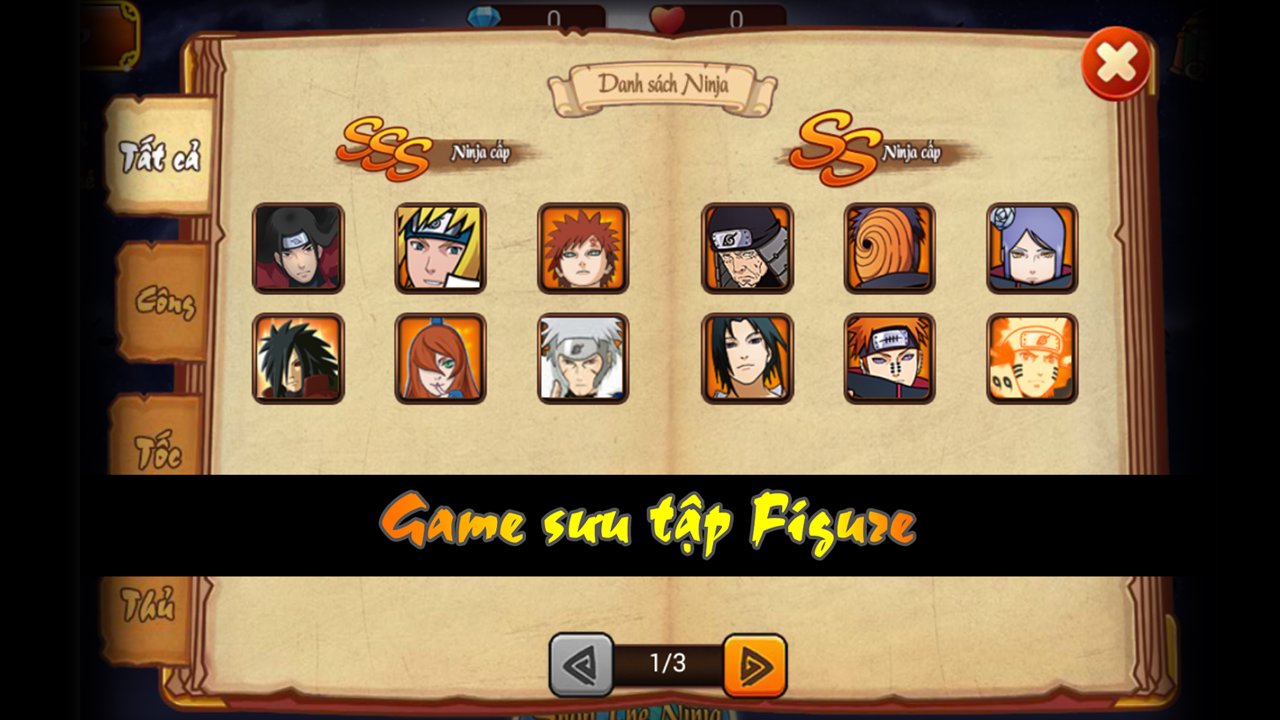 - Dàn thẻ shinobi các quốc gia từ cấp hạ đẳng đến trung đẳng, thượng đẳng, Anbu, Hokage điều phỏng theo nguyên tác truyện từng milimet