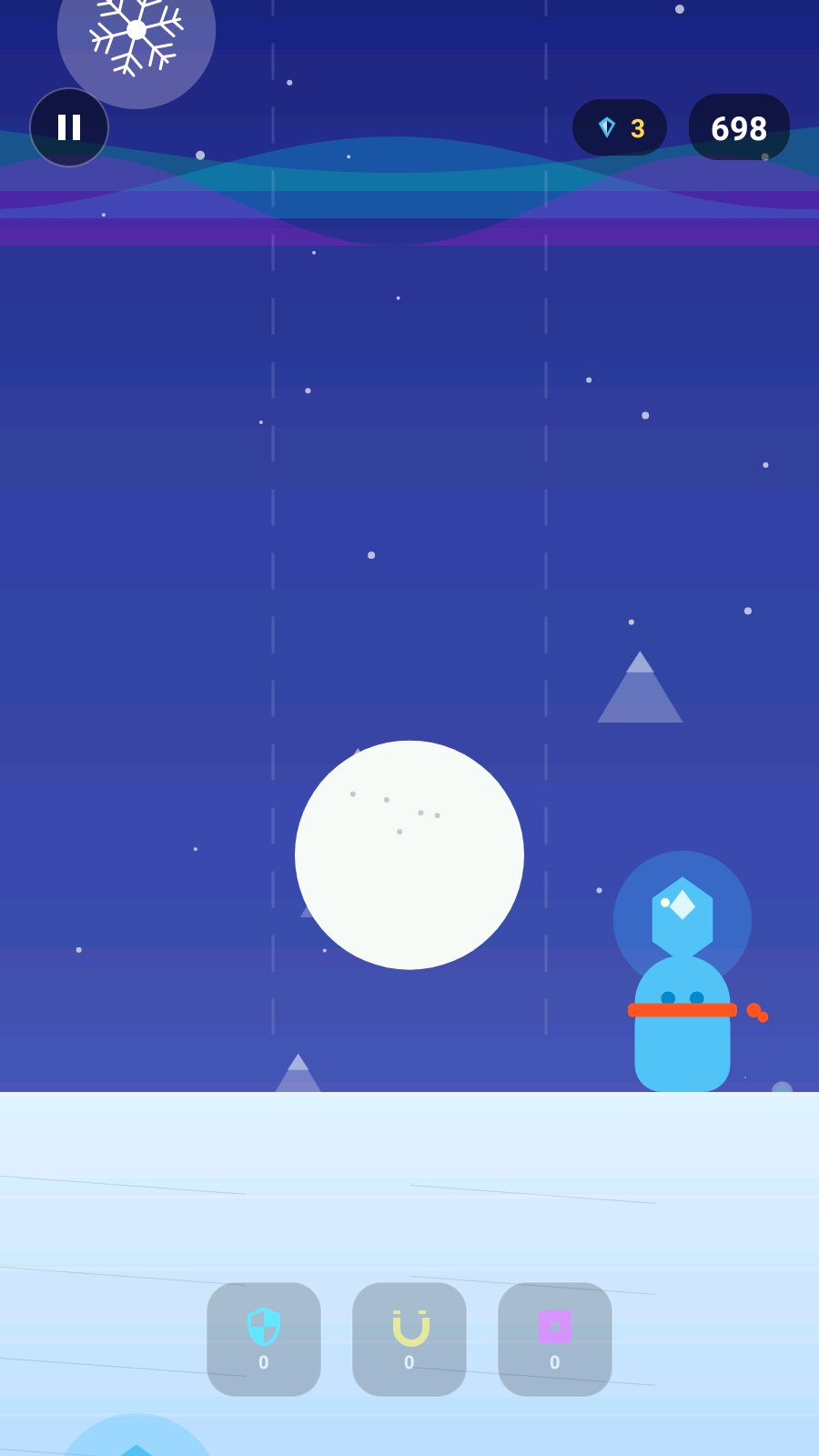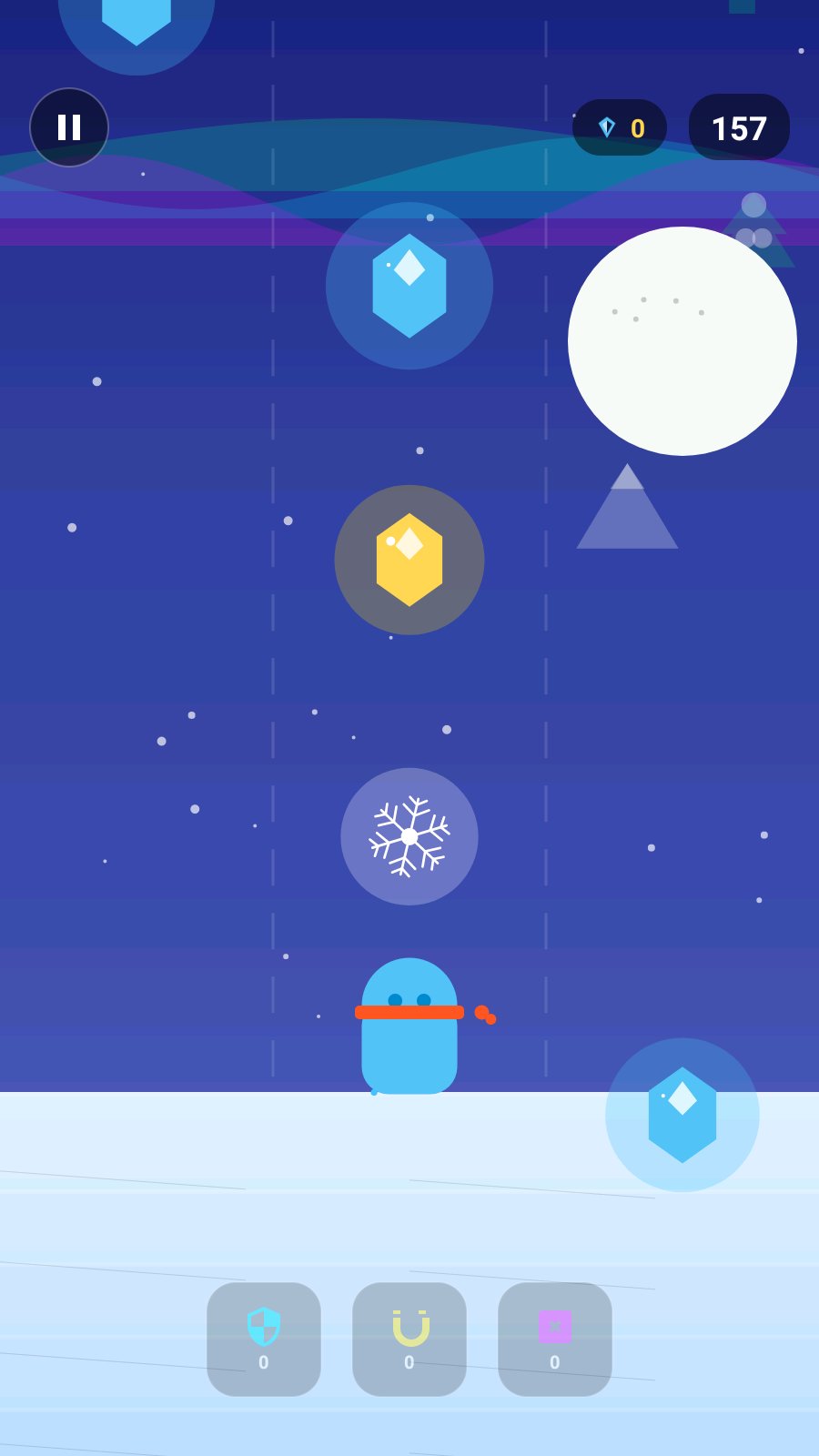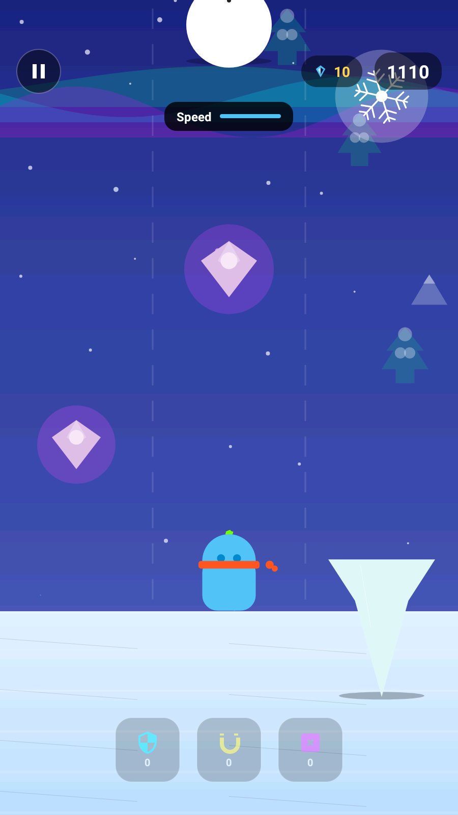 Collect shimmering ice crystals, golden gems, and rare diamonds scattered across the frozen path. Use the coins you earn to unlock five unique winter characters, each with their own style and personality.