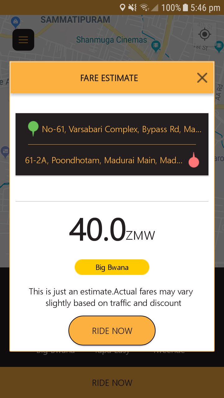 Zambia's premier Taxi hailing mobile app. Call for a taxi from within the app and get going with the nearest cab available.