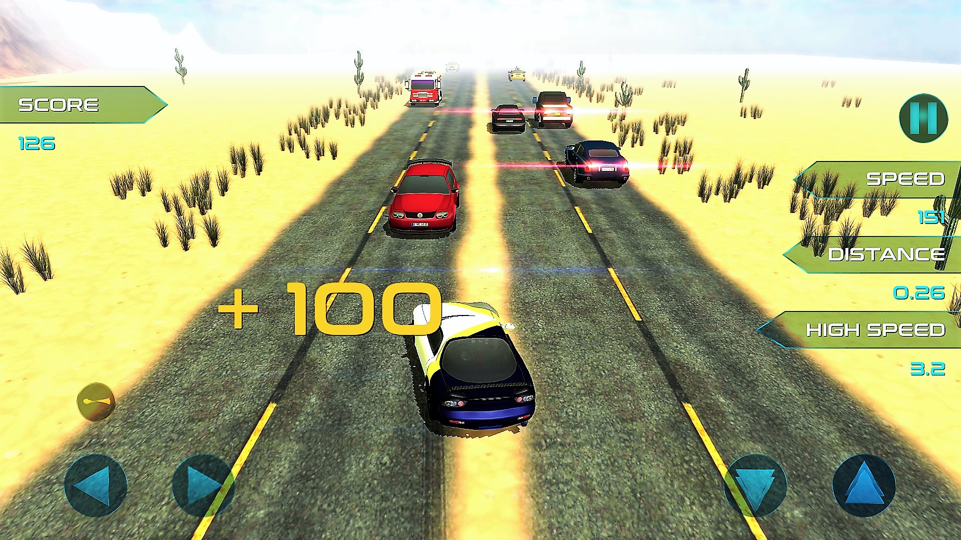 - When driving over 100 kmh, overtake cars closely to get bonus scores