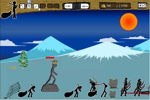 Stick Wars offers a nice array of units at your disposal including: Giants, Magikills, Archidons, Speartons, Sword Wraths, and the lowly workers known as Miners. You can take individual control of any of the units as you play the game or you can issue your marching orders from above.
