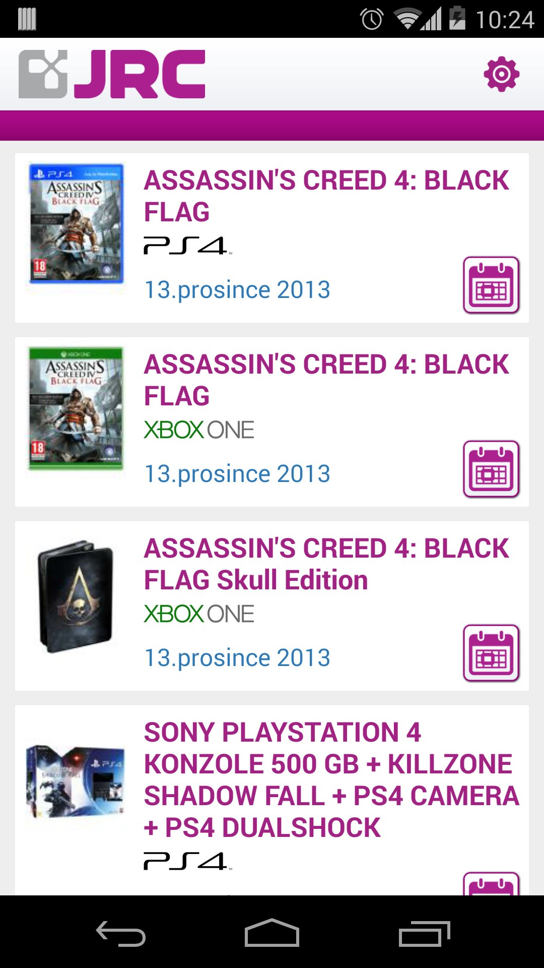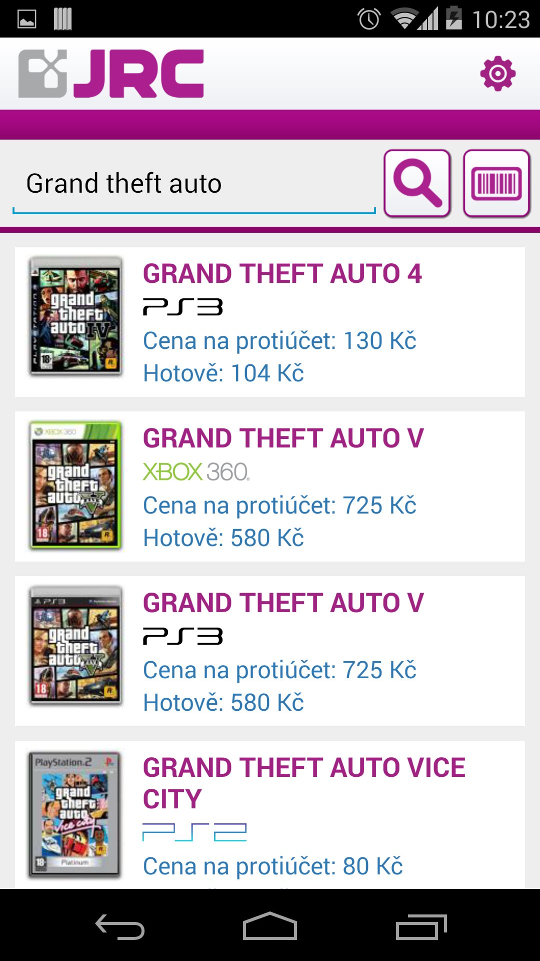 S mobilní aplikací JRC budete mít vždy přehled o aktuálních výkupních cenách vašich konzolových her. Výkupní ceny můžete vyhledávat nejen zadáním jejich názvu do inteligentního vyhledavače, ale také vyfocením čárového kódu na zadní straně hry. Jednu z dalších užitečných funkcí aplikace najdete v sekci "Kdy co vyjde", ve které můžete jedním dotykem přidat do svého kalendáře upozornění na datum vydání vámi očekávané hry. V případě, že se datum změní, automaticky vám ho zaktualizujeme. Do aplikace také můžete uložit číslo své zákaznické karty a mít ho tak při nákupu vždy po ruce. Samozřejmostí je lokátor nejbližších prodejen s možností kontaktovat vámi vybranou prodejnu telefonicky a e-mailem. Další užitečné funkce budou následovat v příštím roce.