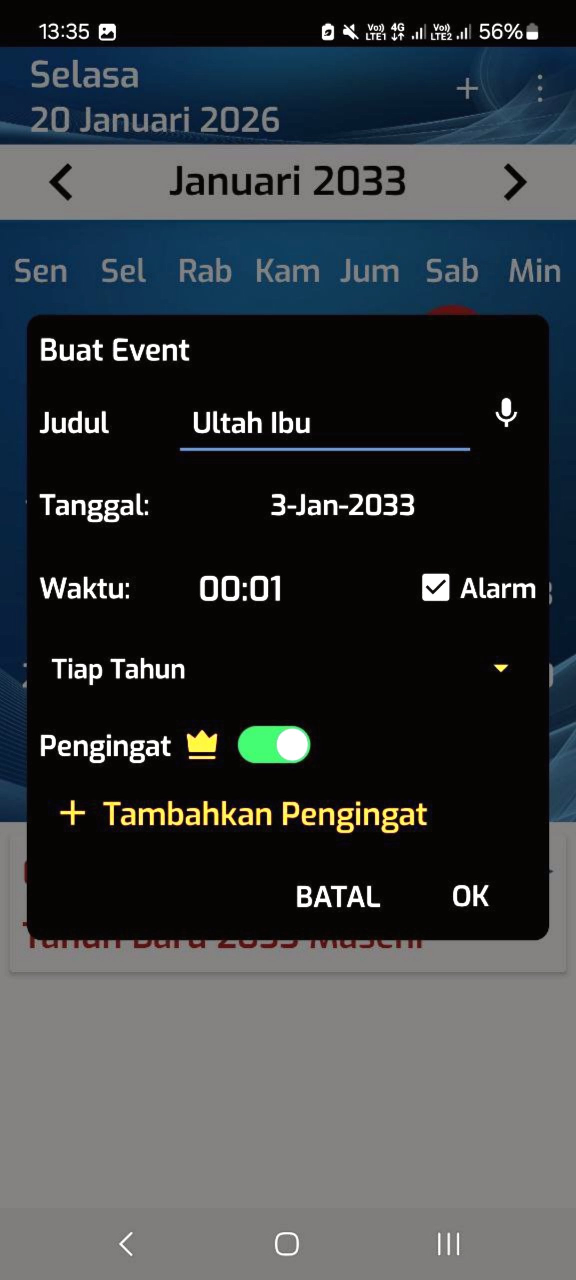✔ Add Events to the Indonesian Calendar: You can add your own events to this calendar and create specific notes. These events will automatically appear in the widget and on your smartphone notifications according to the date you specify. You can also delete, change, or modify your events easily. You can also set an alarm for your events.