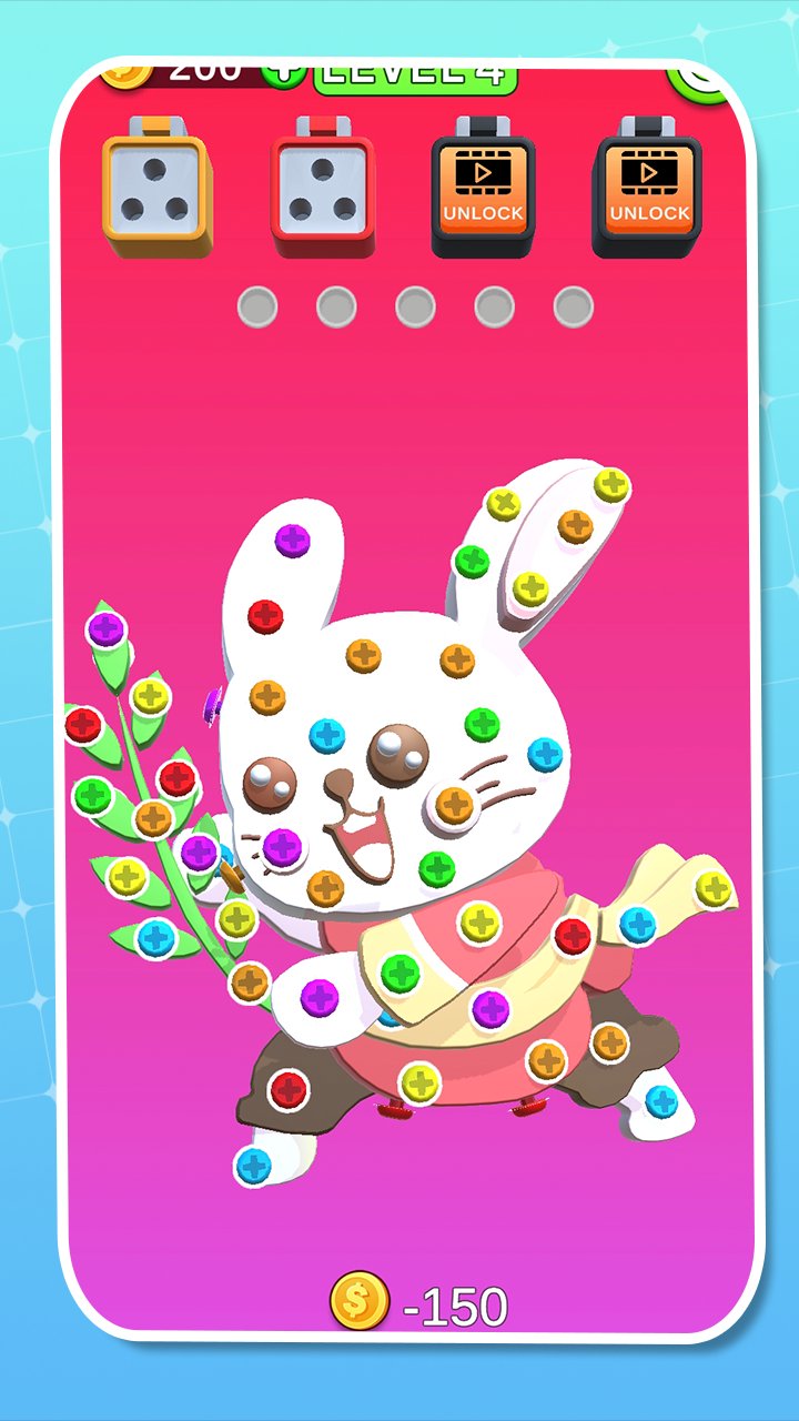 King of Smash is a casual puzzle game. Players pull screws of different colors from a board and place them into correspondingly colored boxes. The challenge arises when you have to avoid five consecutive pulls without a matching box. With the ability to approach from various angles, it tests your observational and planning skills, making it perfect for puzzle enthusiasts.