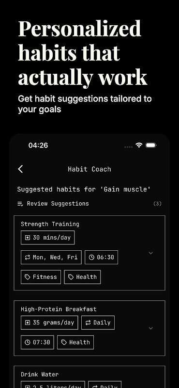 This all-in-one habit tracker, daily journal, and AI motivation coach helps you create routines, improve productivity, and track personal growth. Whether you want to boost focus, lose weight, or simply build a healthier lifestyle—this app makes self-improvement easy and motivating.