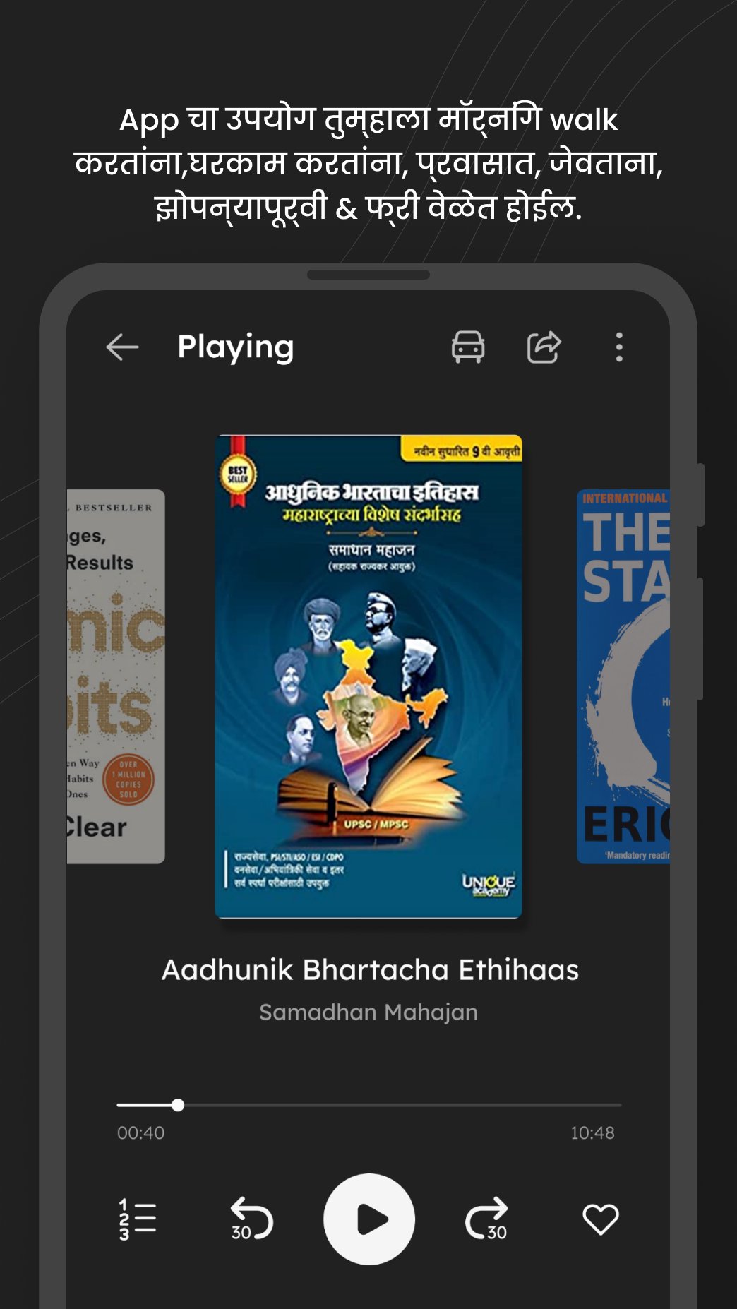 Exclusive Marathi content curated in association with renowned Authors, expert Voice Over Artists & Subject experts for aspirants of MPSC and UPSC.