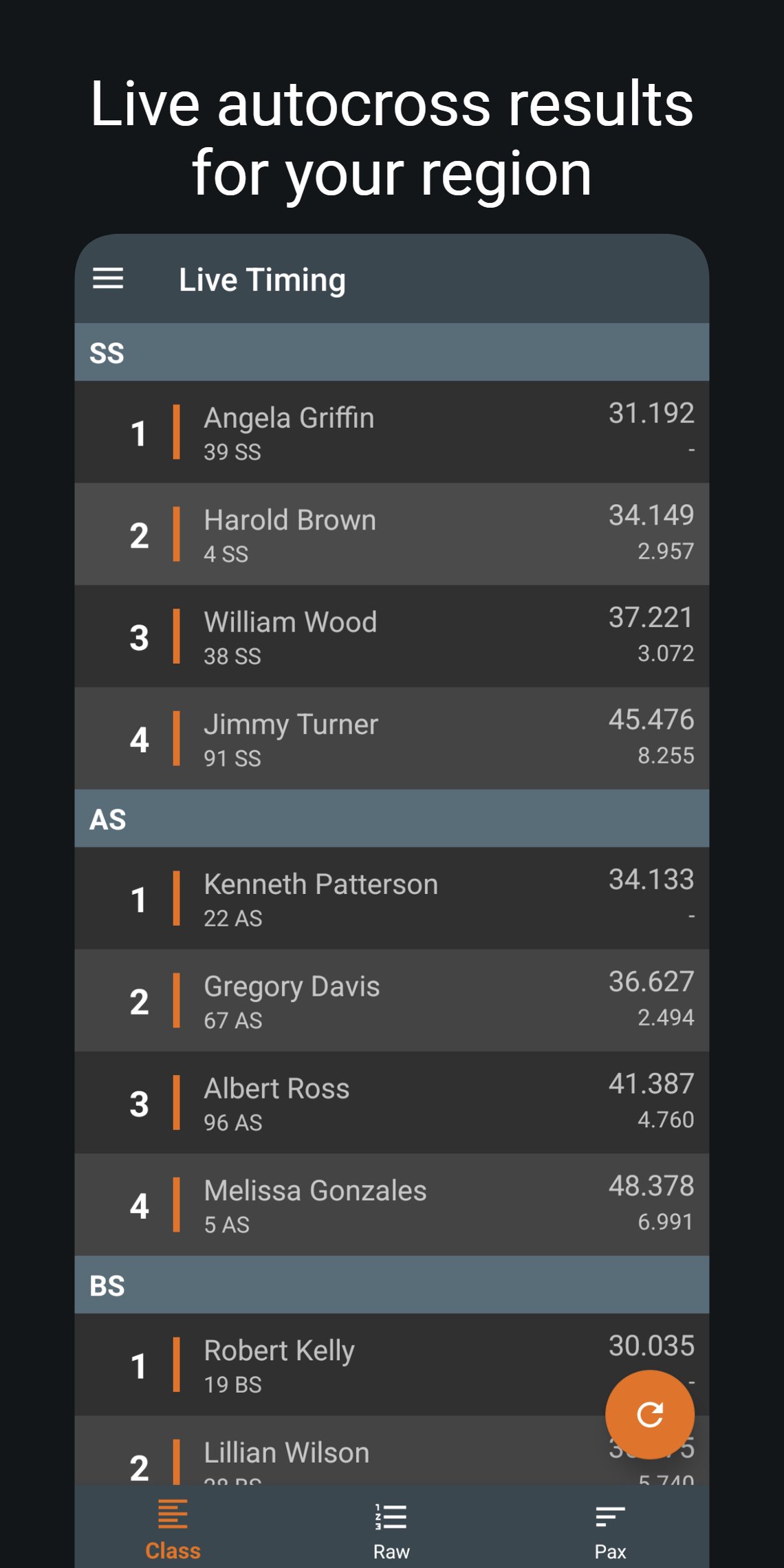 View class times, PAX times, and raw times in real time using the Live Timing app.