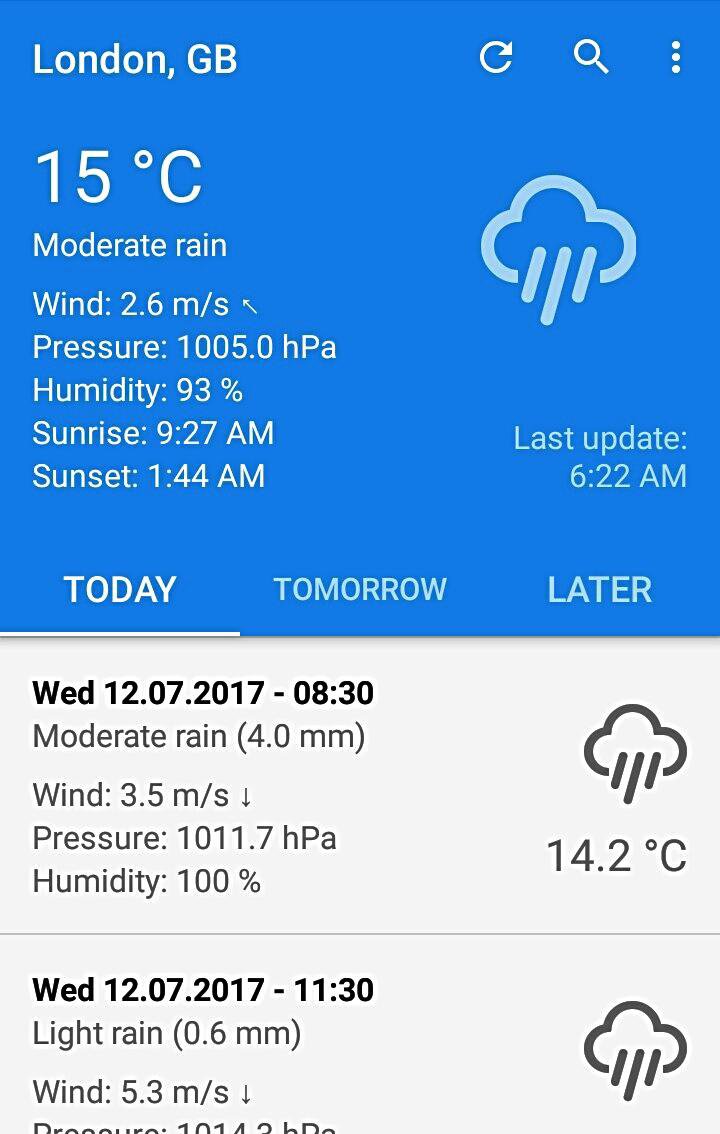 LMD Weather is a weather forecasting android application with elegant and clean user interface. It is one of the most light weighted and user friendly weather application available on Google Play.