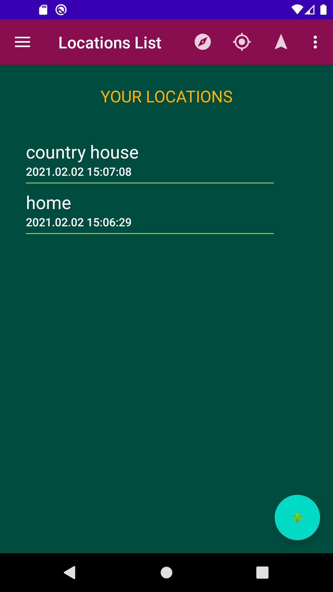 Imagine you are a squirrel and you have dug in some nuts in the forest. Or you are a human being and you drove in the forest to mushroom. Tap round plus button to save this location before you leave your property. You can name it and edit some other data if you want. The location would be on the top of list with time mark after you tap the Add Location button. That is.