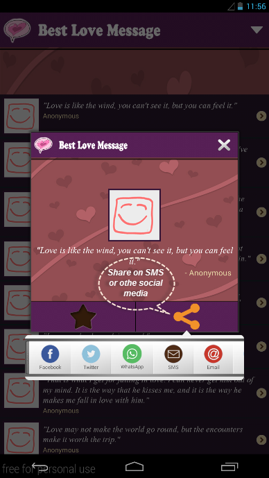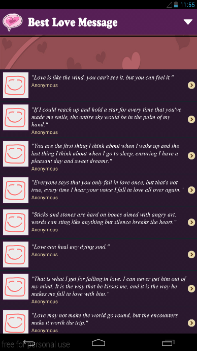 Best Love Message is an android app collect more than one hundrend of the best love quotes & sayings!