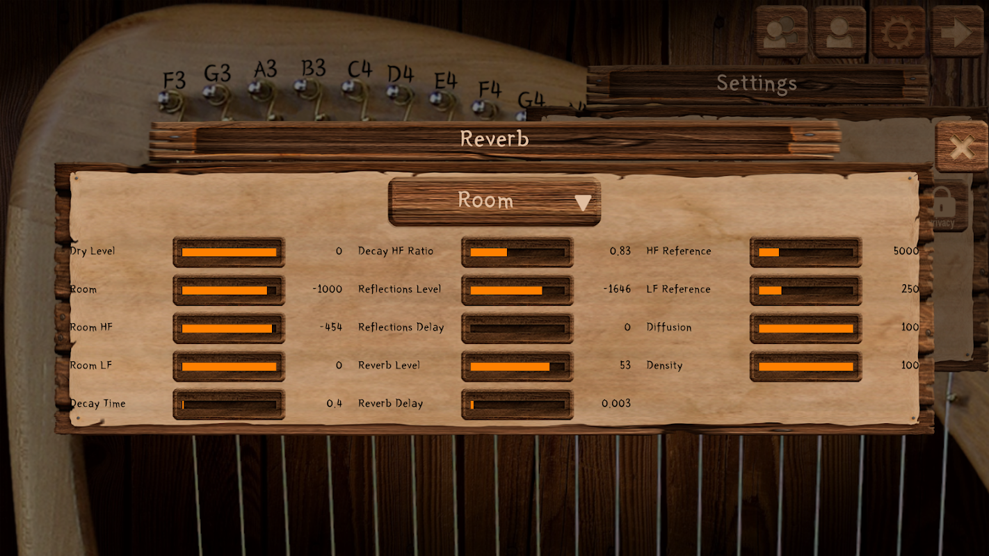 The Lyre Harp Real is Lyre Harp simulation app with 19 strings. Frequency range: F3 -> C6.