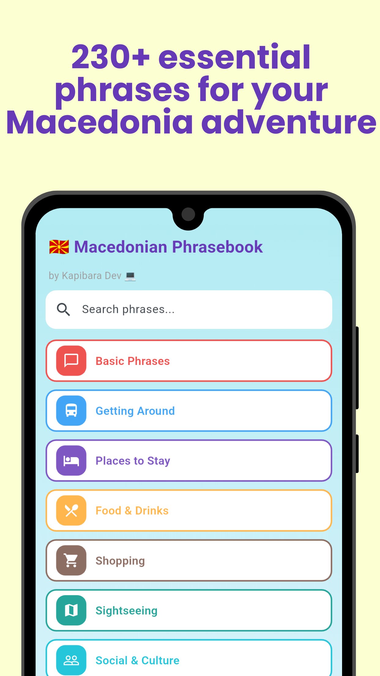 Learn 230+ essential Macedonian phrases for your trip.