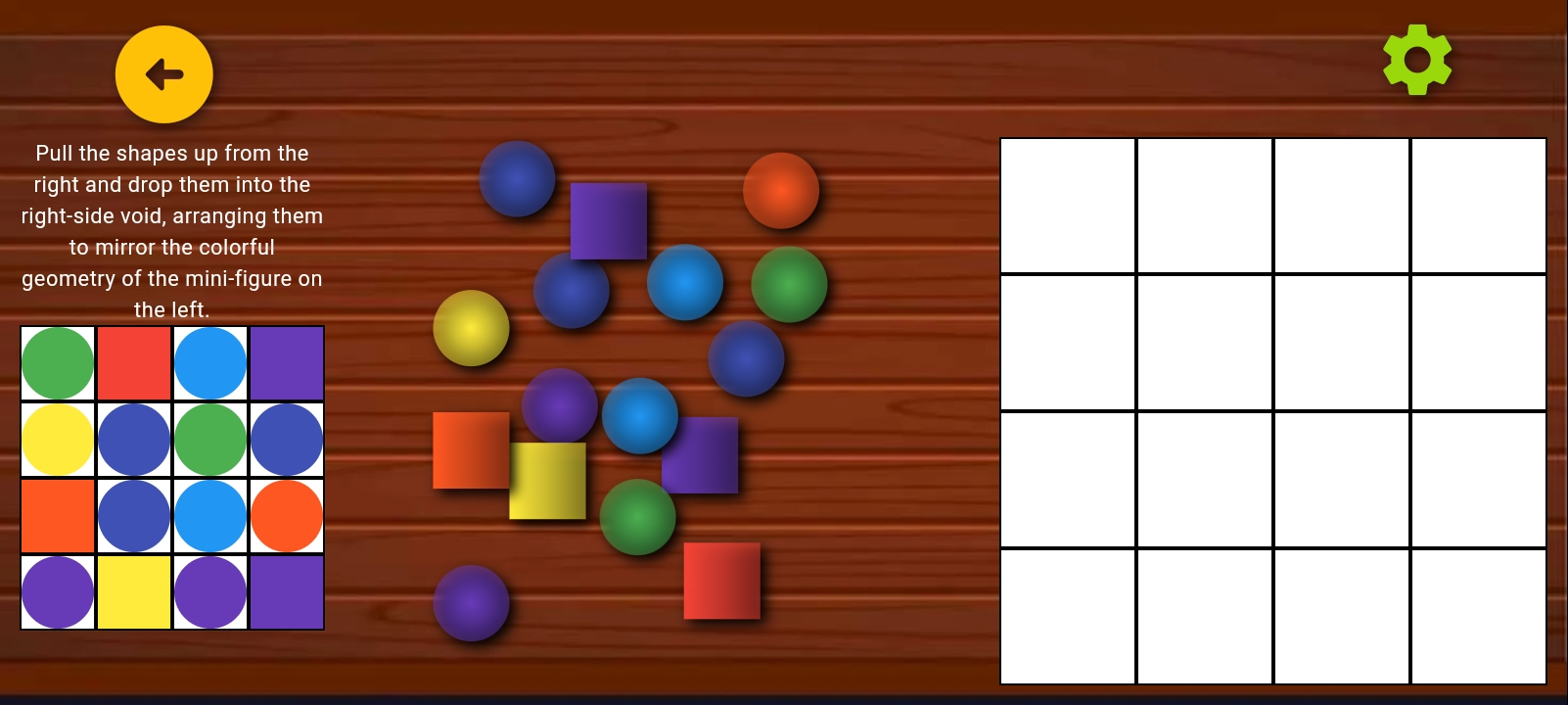 ✅ Pattern Matching – Arrange objects to match a given model using balls and squares of different colors.