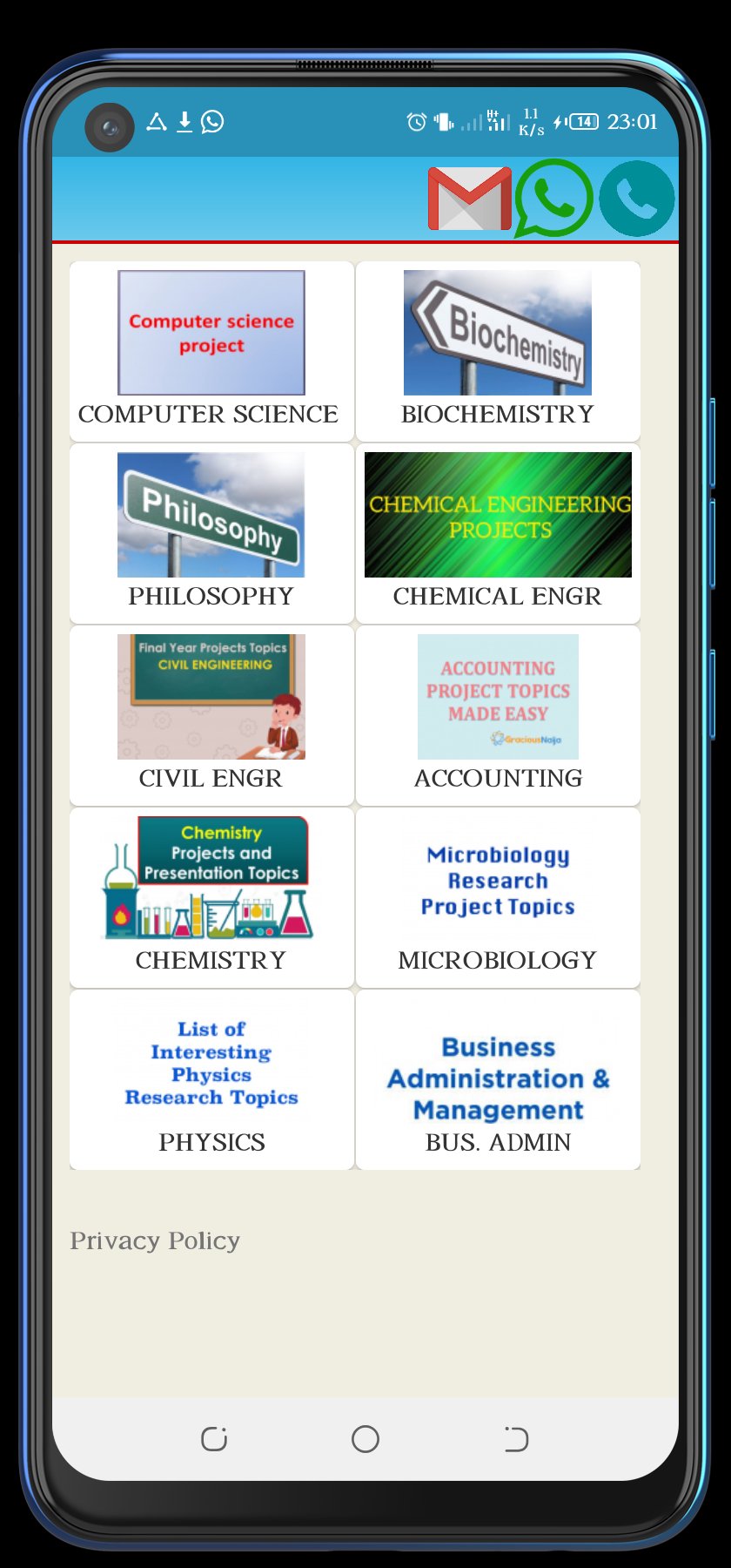 Project topics has never been so easy, all users of this app would have access to ten department project.