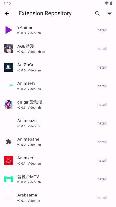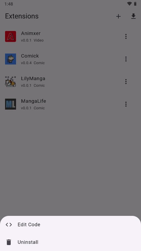 Choose your extensions and find your mangaOne of the most important aspects of a manga reading app is being able to quickly find the work you are looking for. To do this, the first thing you will need to do is configure your extensions. This step is very simple. Just click on the Extensions Repository tab, which is the third tab of the app, and add as many as you want. You can filter by comic, video or novel. Each of these extensions will allow you to access the server's complete catalog.