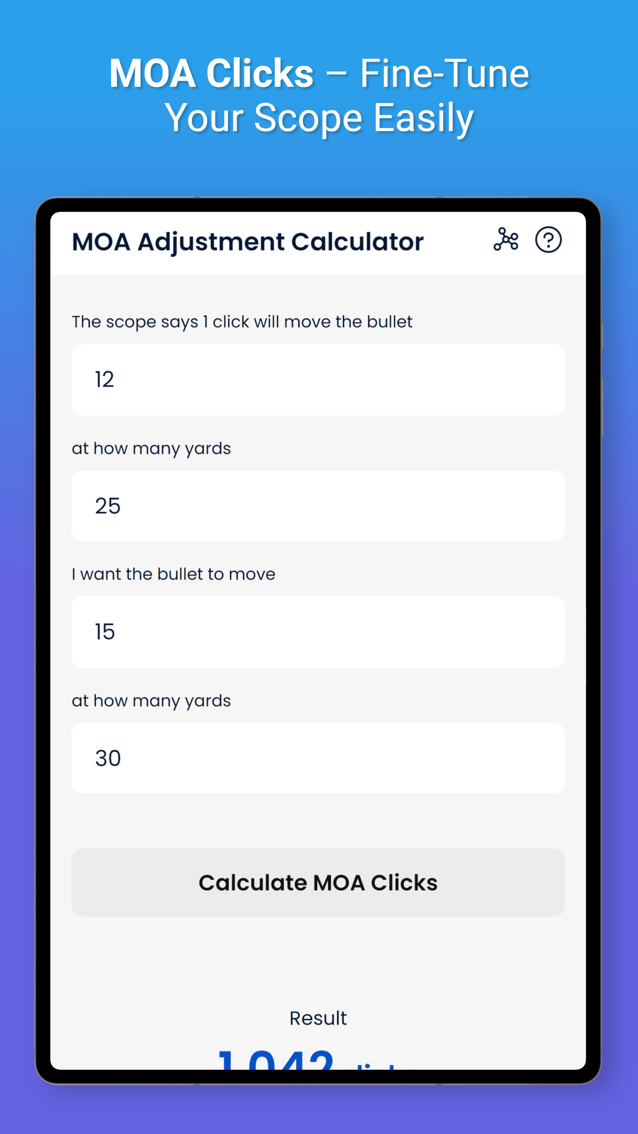 MOA & MIL Calculations – Get precise adjustment values for any distance.