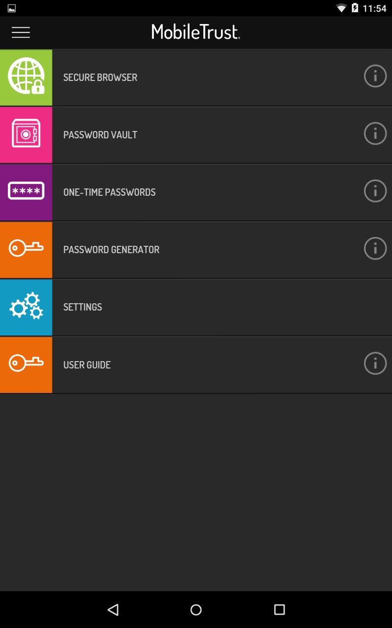 An advanced security suite to protect user credentials, passwords, online transactions and access to corporate networks. The MobileTrust features include six powerful security tools that every enterprise mobile user needs to be secure.