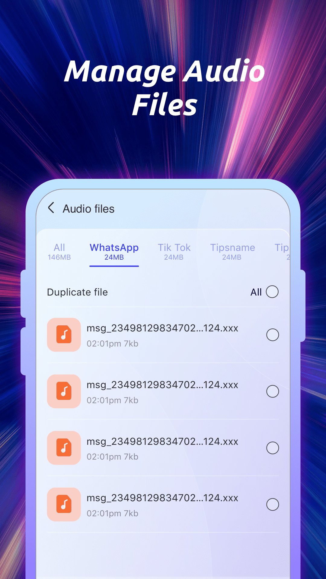 - Audio file management: find hidden audio files stored on your phone