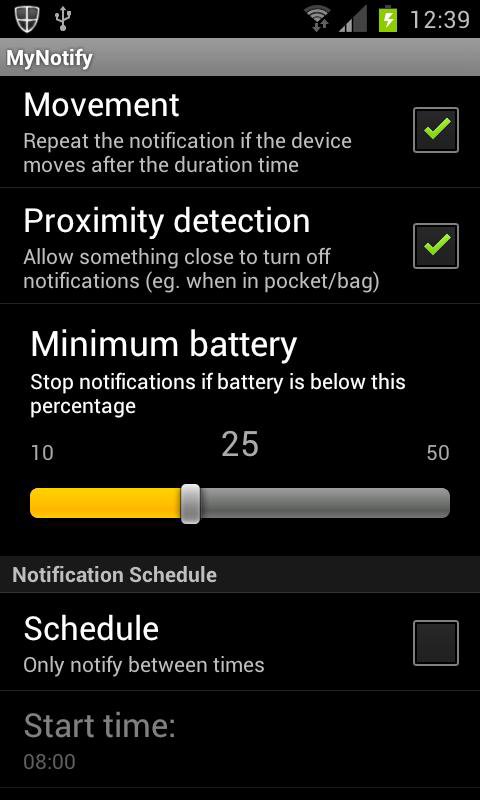 Notifications occur at a set interval for a duration of time; can be on a schedule; can be stopped if the device battery is too low or the device is in a bag.