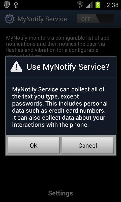 MyNotify is an Accessibility service allowing for notifications on devices without hardware notification LEDs, or to a Pebble smartwatch.