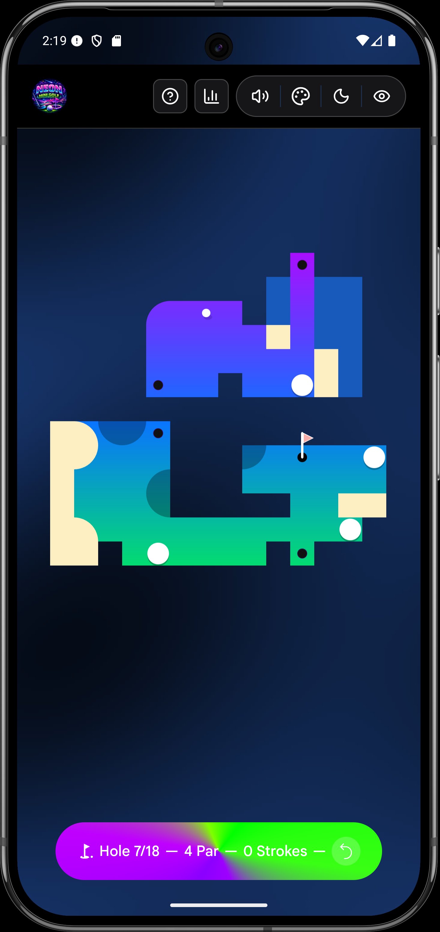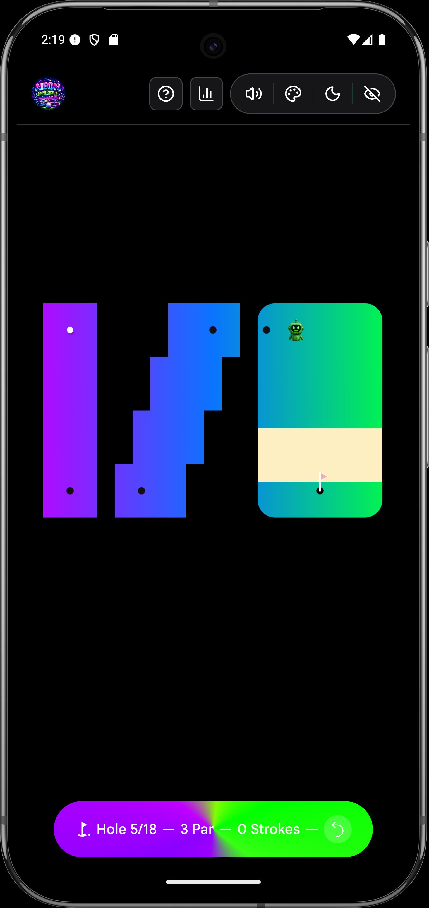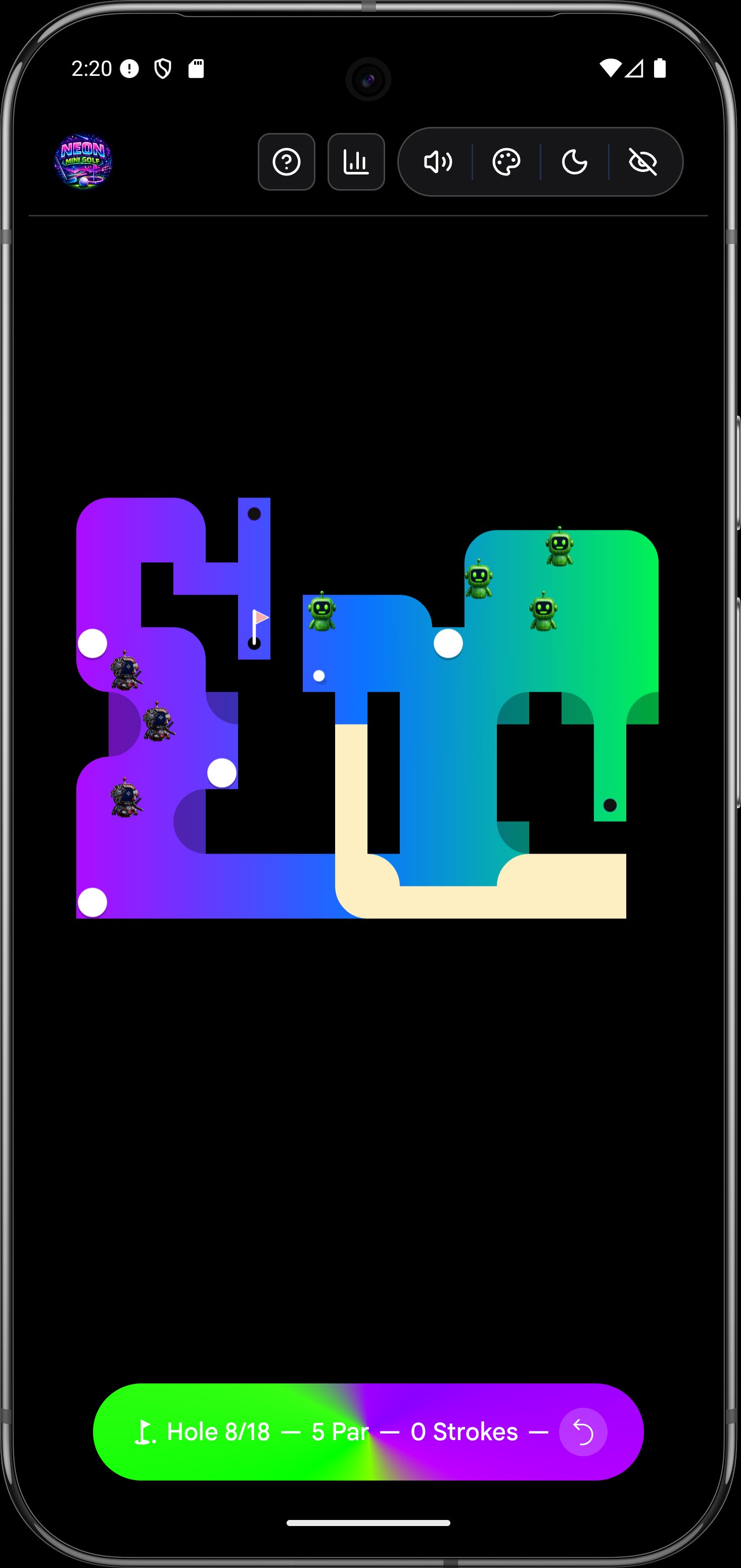 Welcome to the most electrifying mini-golf experience on mobile! 🌟 Dive into a world of vibrant neon courses, mind-bending portals, and challenging Matrix bots across 18 unique holes.