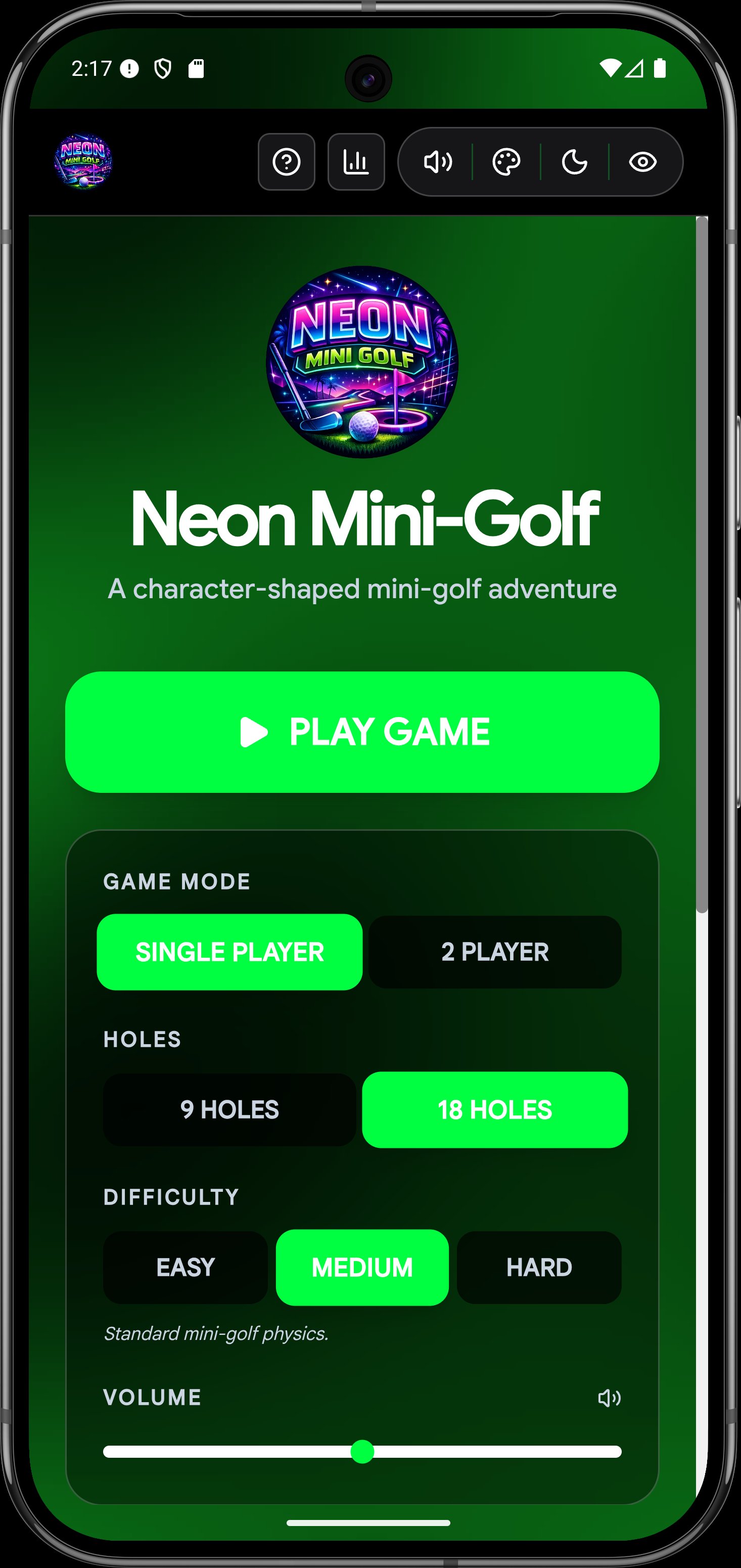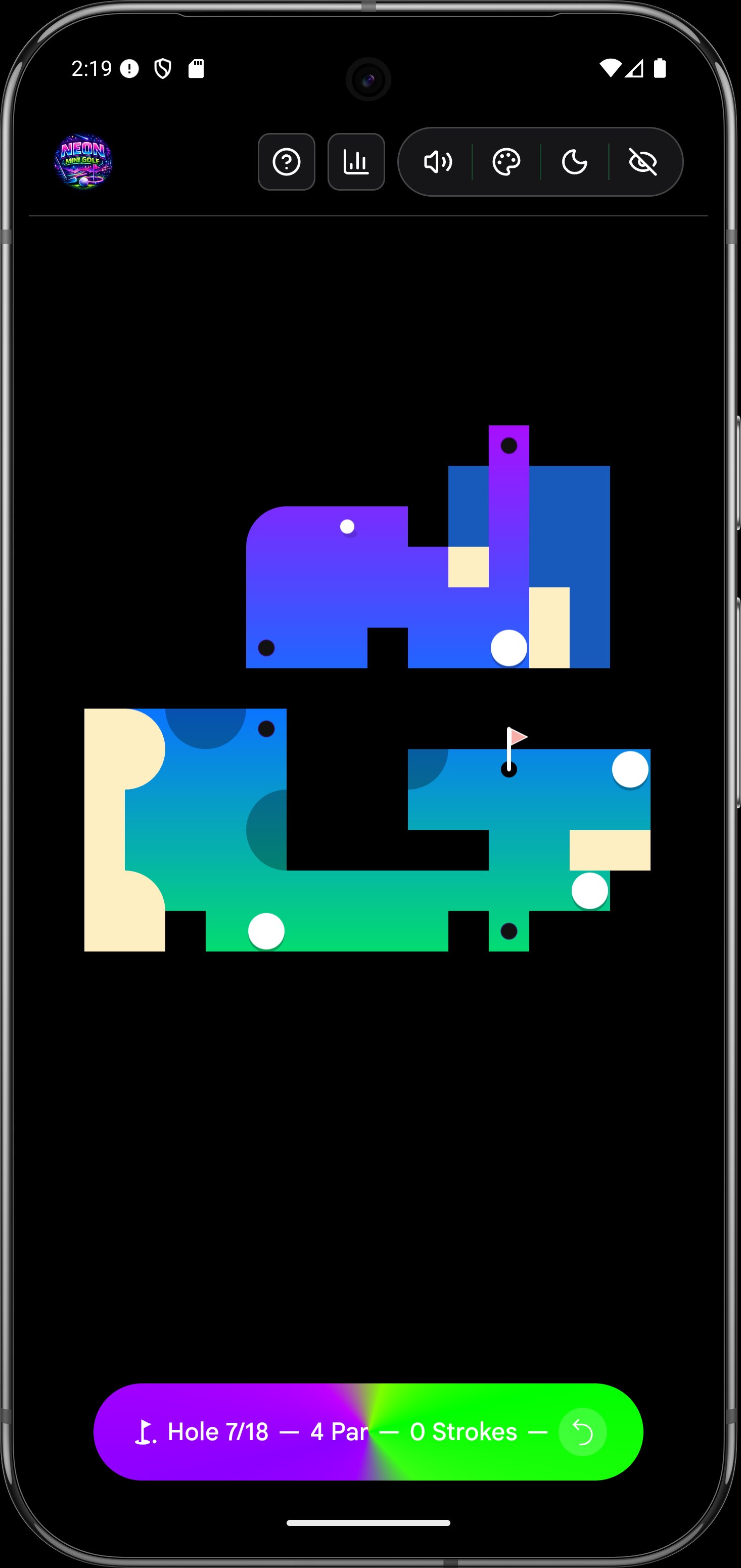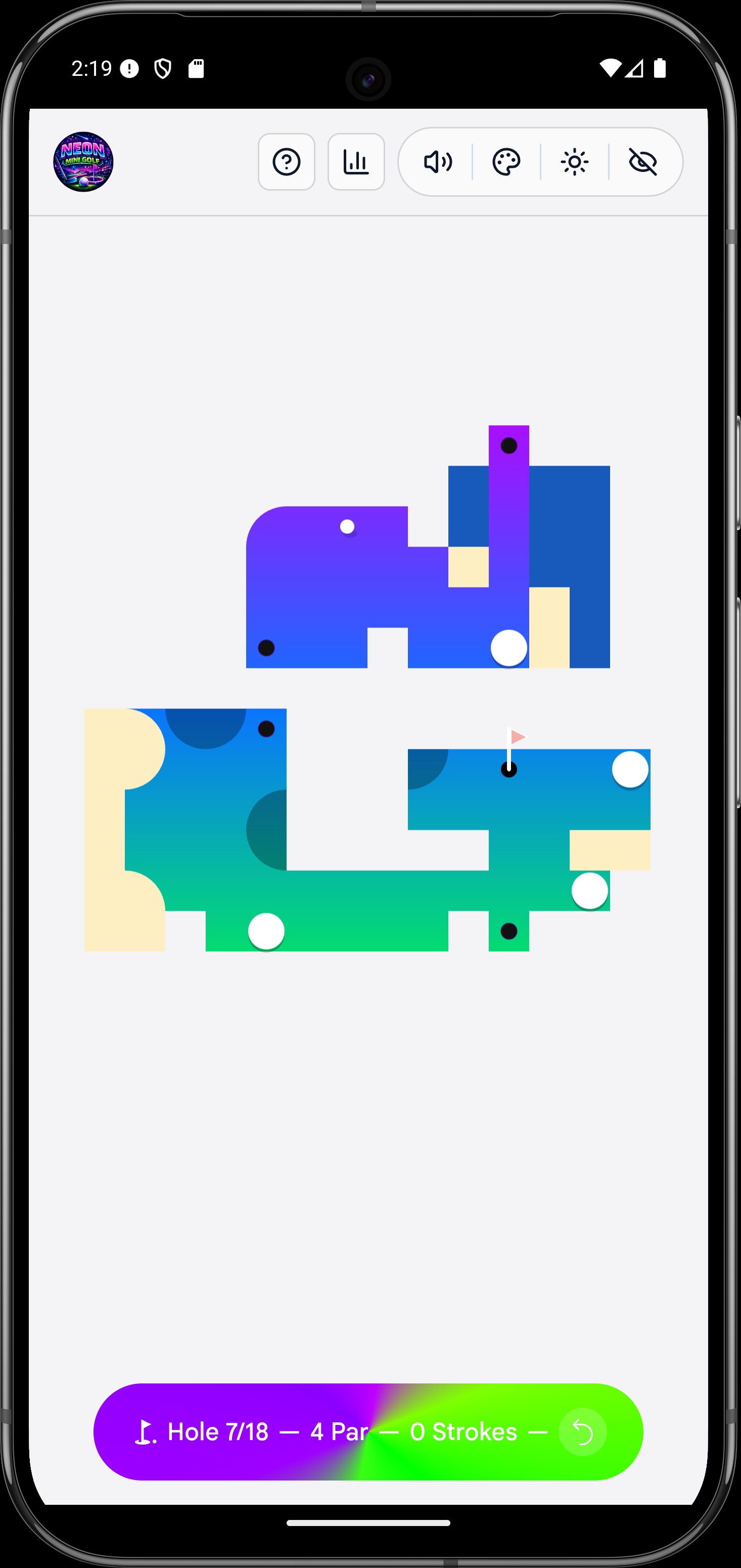 Welcome to the most electrifying mini-golf experience on mobile! 🌟 Dive into a world of vibrant neon courses, mind-bending portals, and challenging Matrix bots across 18 unique holes.