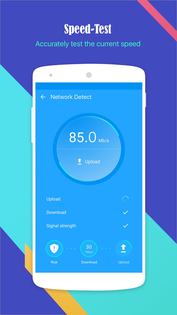 Comprehensively detects network status, including Wi-Fi security, download speed, upload speed, networking devices, and more. All with just one tap.
