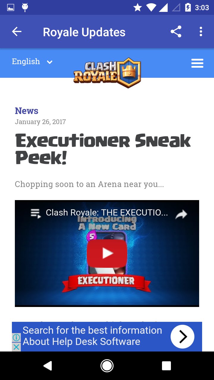 This app fetches the latest news and update content from Clash Royale web servers