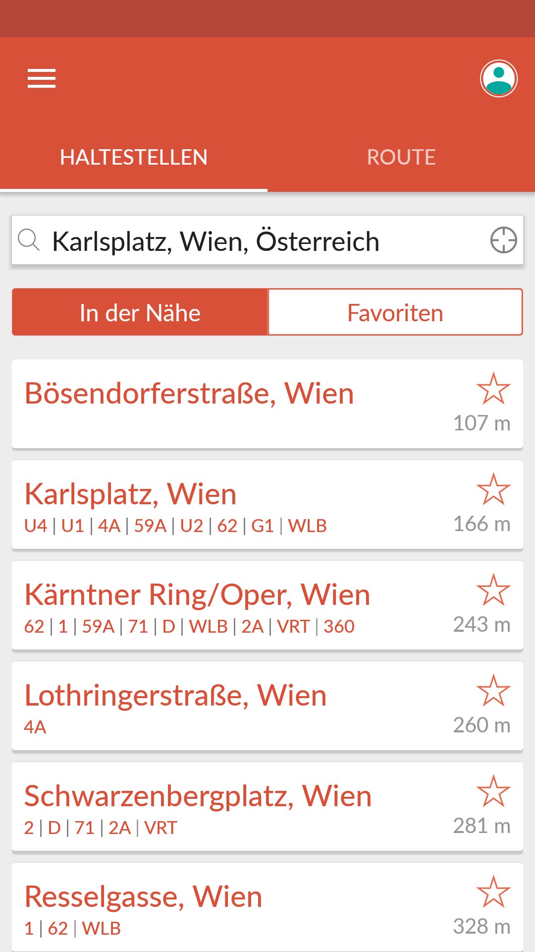 * Speichere deine Haltestellen und Routen als Favoriten