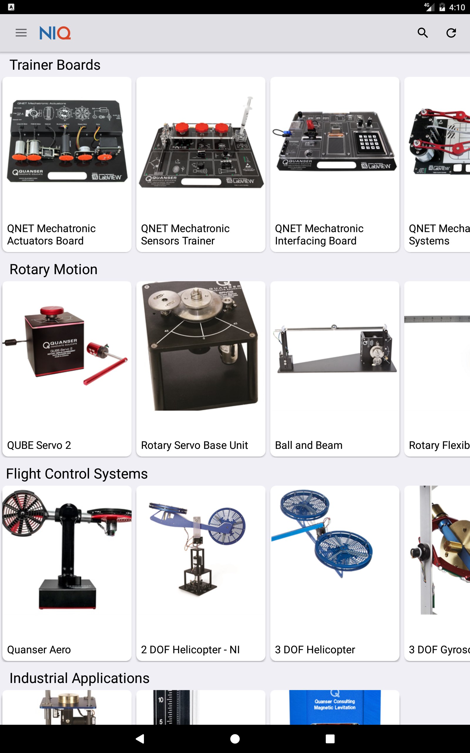NIQ is an interactive app filled with product information, images, videos and interactive examples of the innovative lab solutions provided by the National Instruments and Quanser partnership.