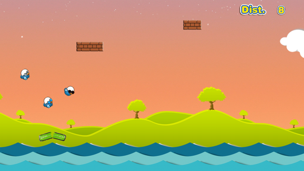 2. Let NO bird fall into the river or collide with the bricks. Try to run as far as you can. The farther you keep the bird fly, the higher score you will get!!!