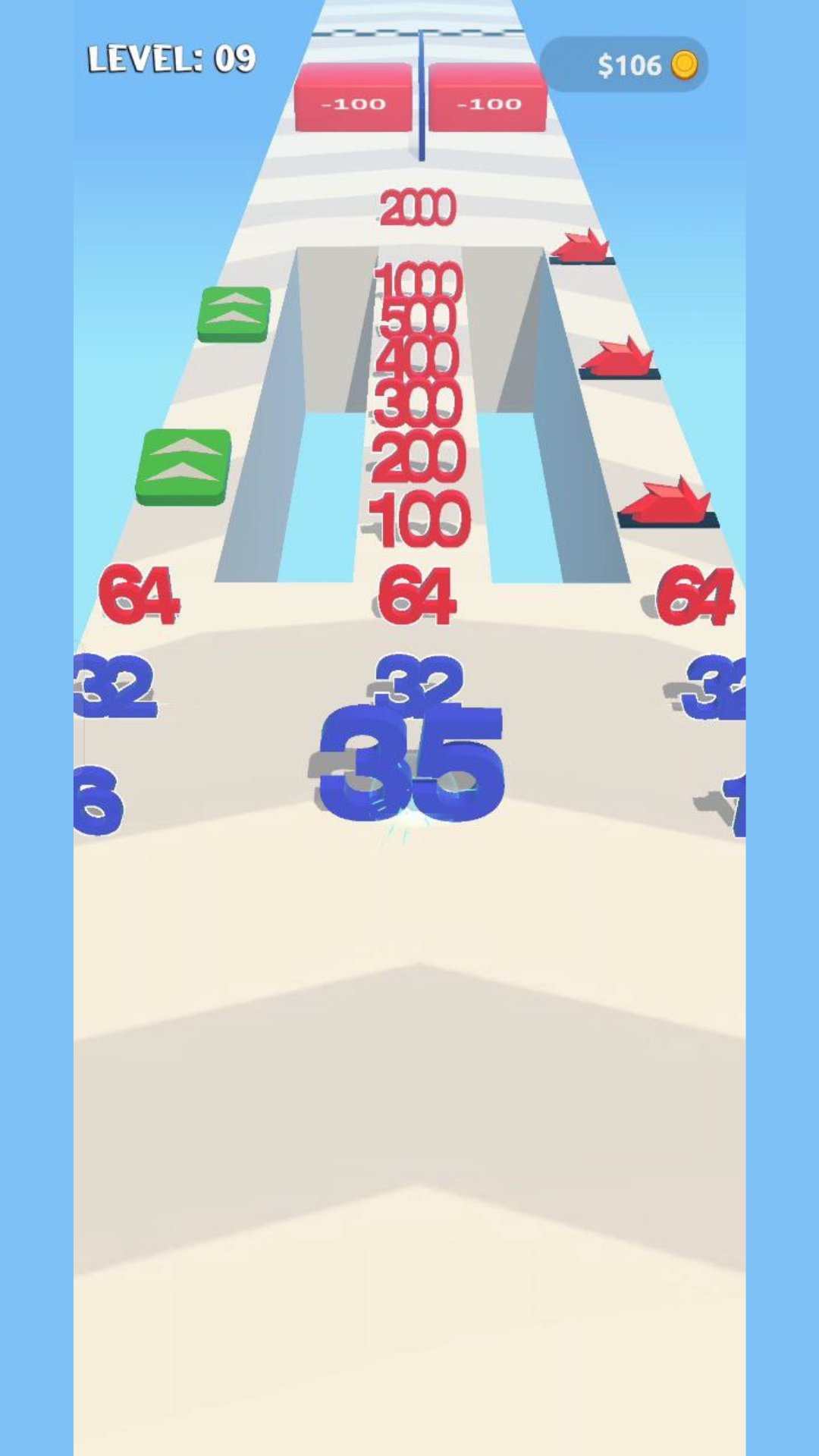 At the goal, break many walls. Break them with big numbers to discover the world beyond!