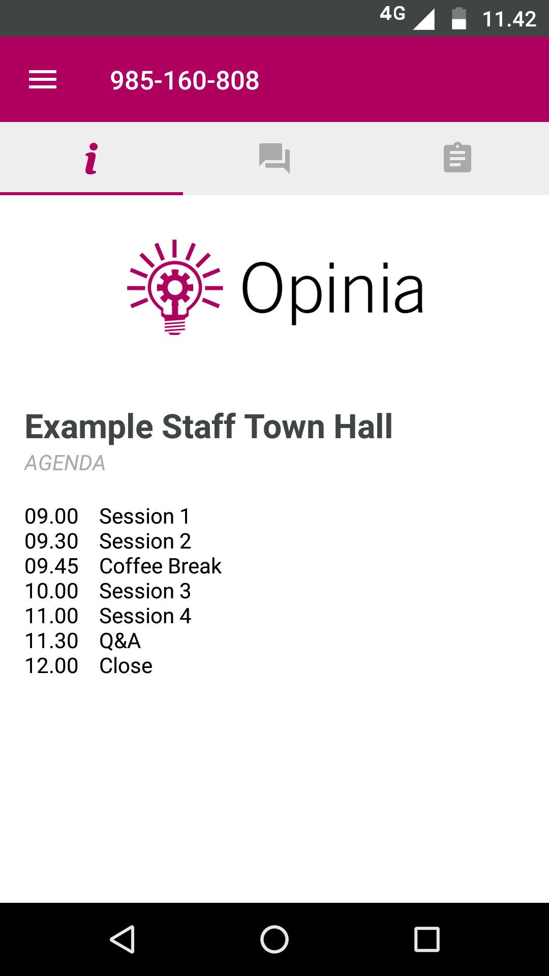 Opinia App has been developed to allow clients and staff to participate, in real-time, during meetings, events and presentations. The application allows individuals to comment, ask questions, vote and view collated results. Opinia App will create an inclusive, interactive and engaging experience for all types of meetings and events, whether in one or multiple locations.