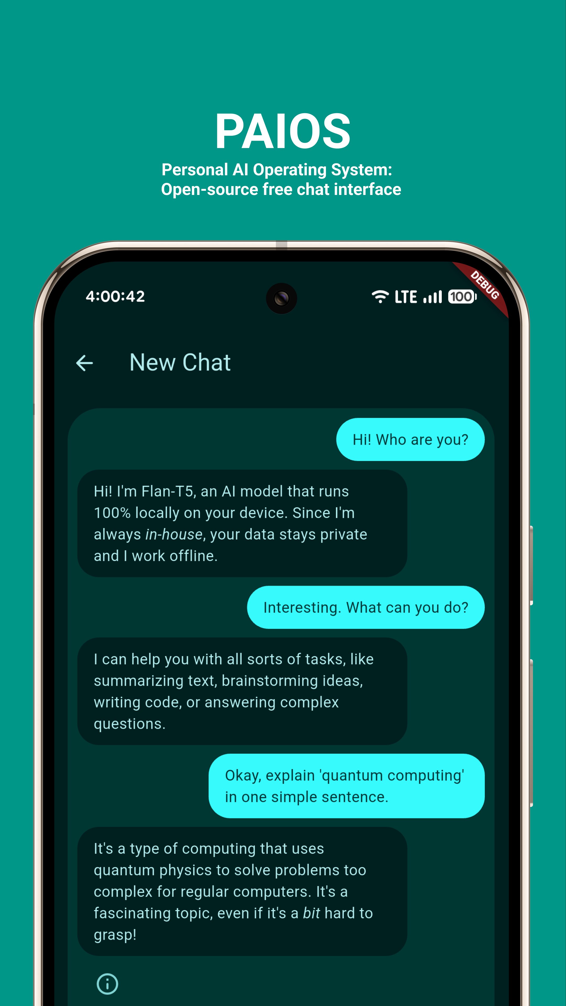 processed locally, and no data is ever sent to a server. What you ask the model stays between you and your phone.