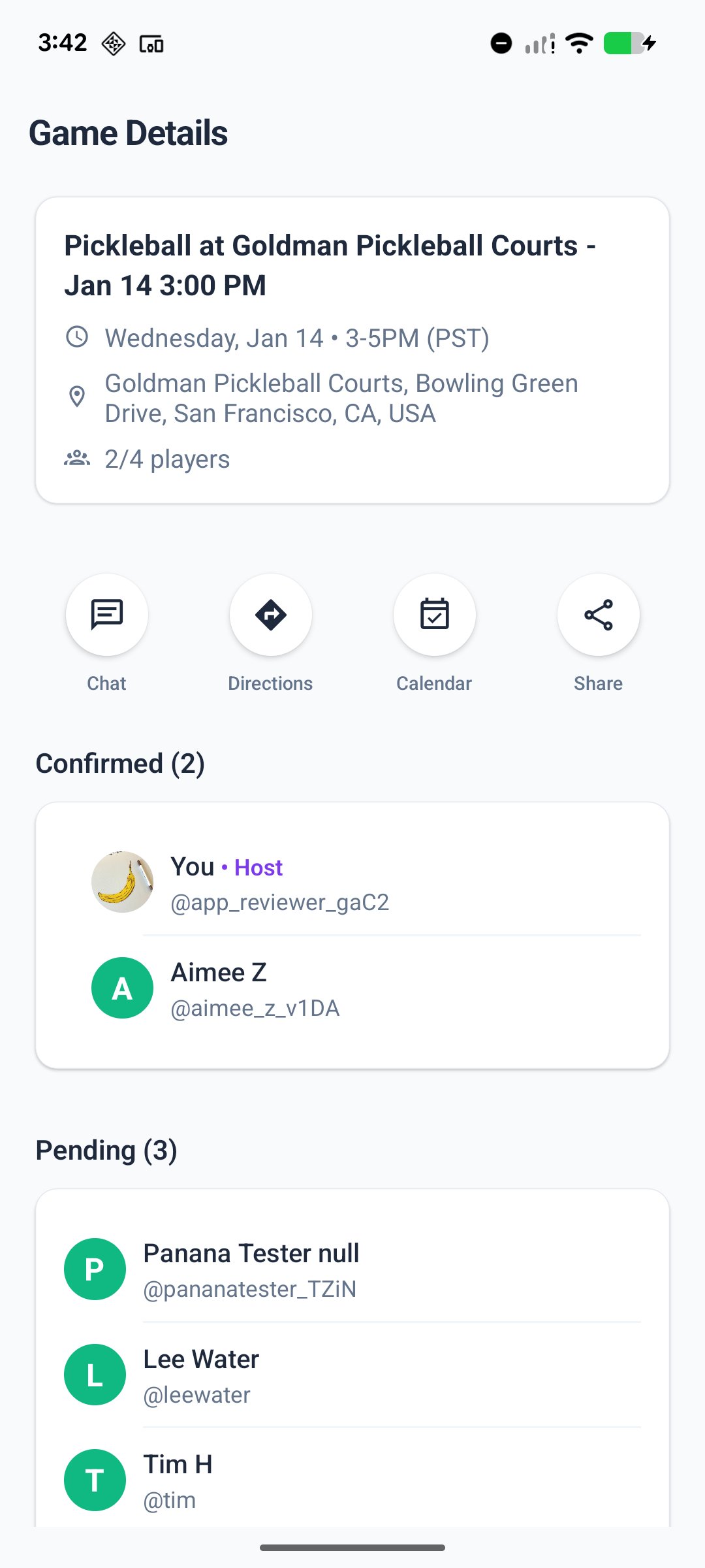 Panana makes it effortless to organize pickleball games with friends. No more group text chaos or forgotten invites. Create a game, invite your crew, and everyone knows exactly when and where to show up.