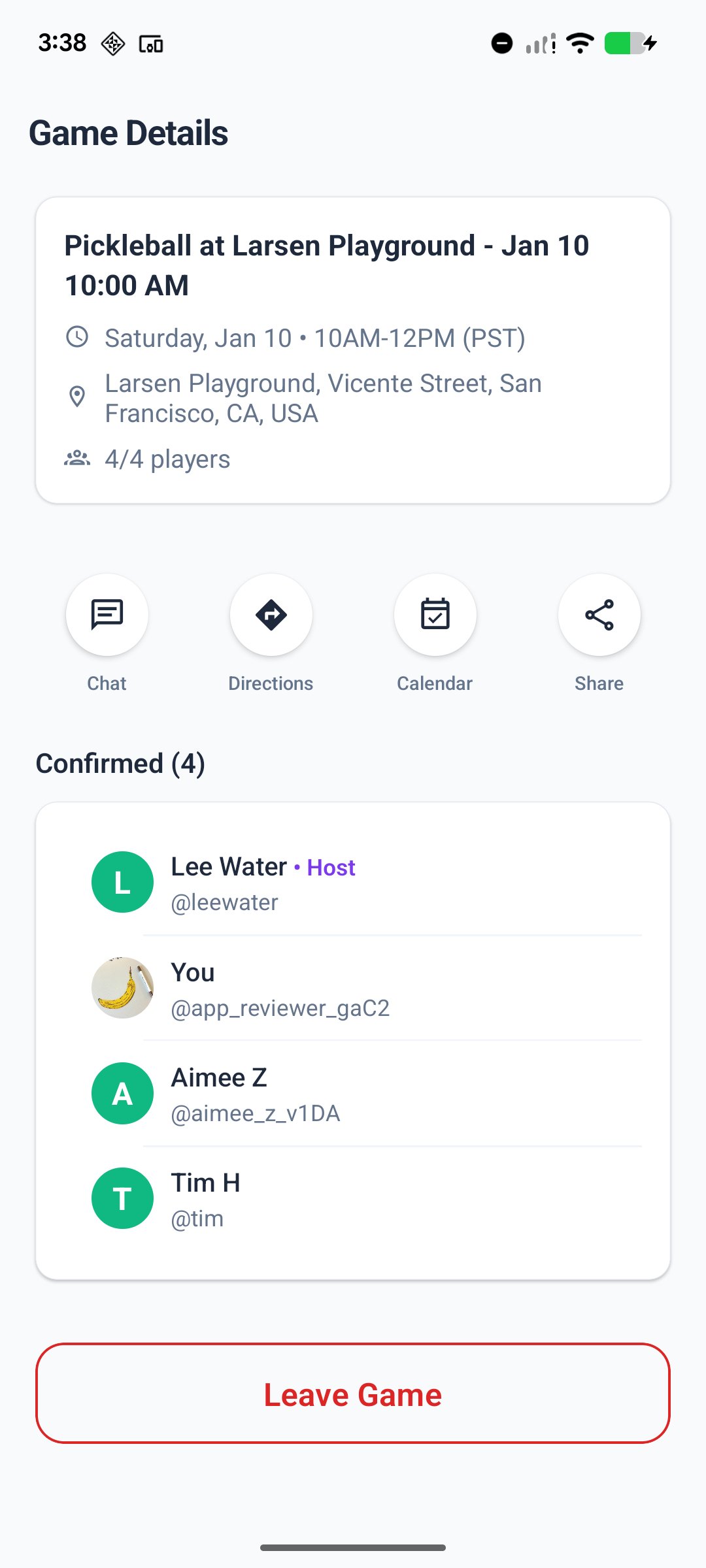 Every game has its own chat. Coordinate last-minute details, share updates, or talk trash before you play.