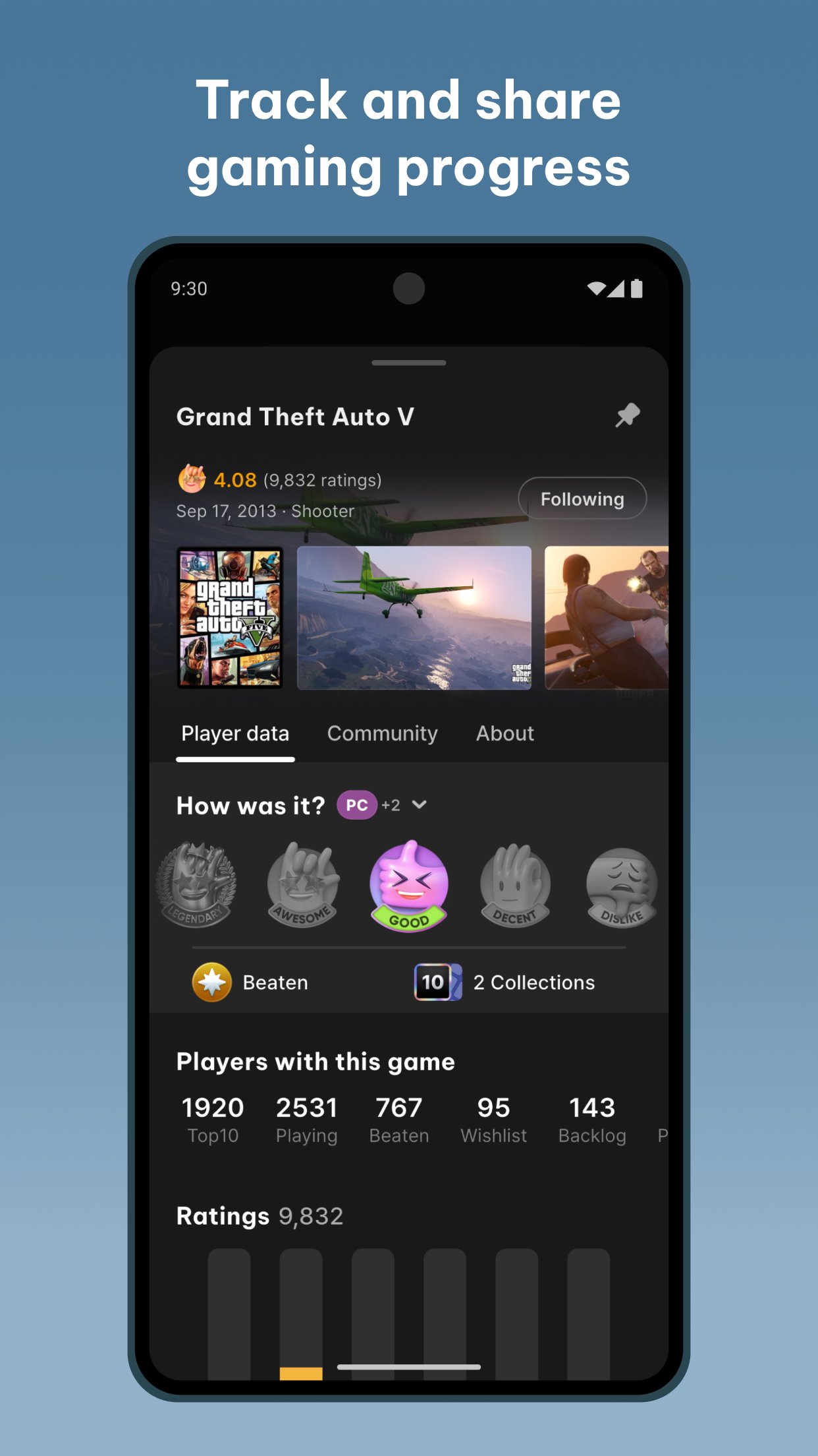• Log your journey: Record every game you’ve played, are playing, or want to play.