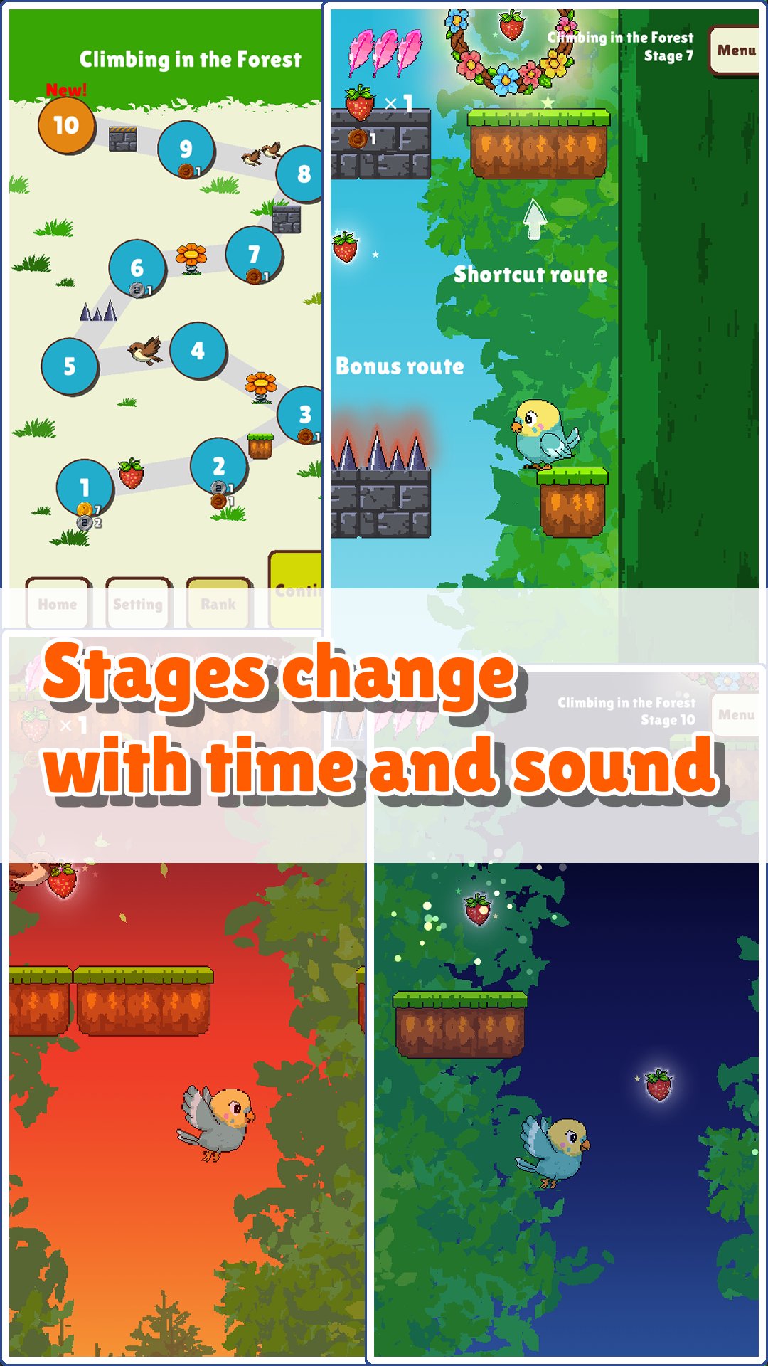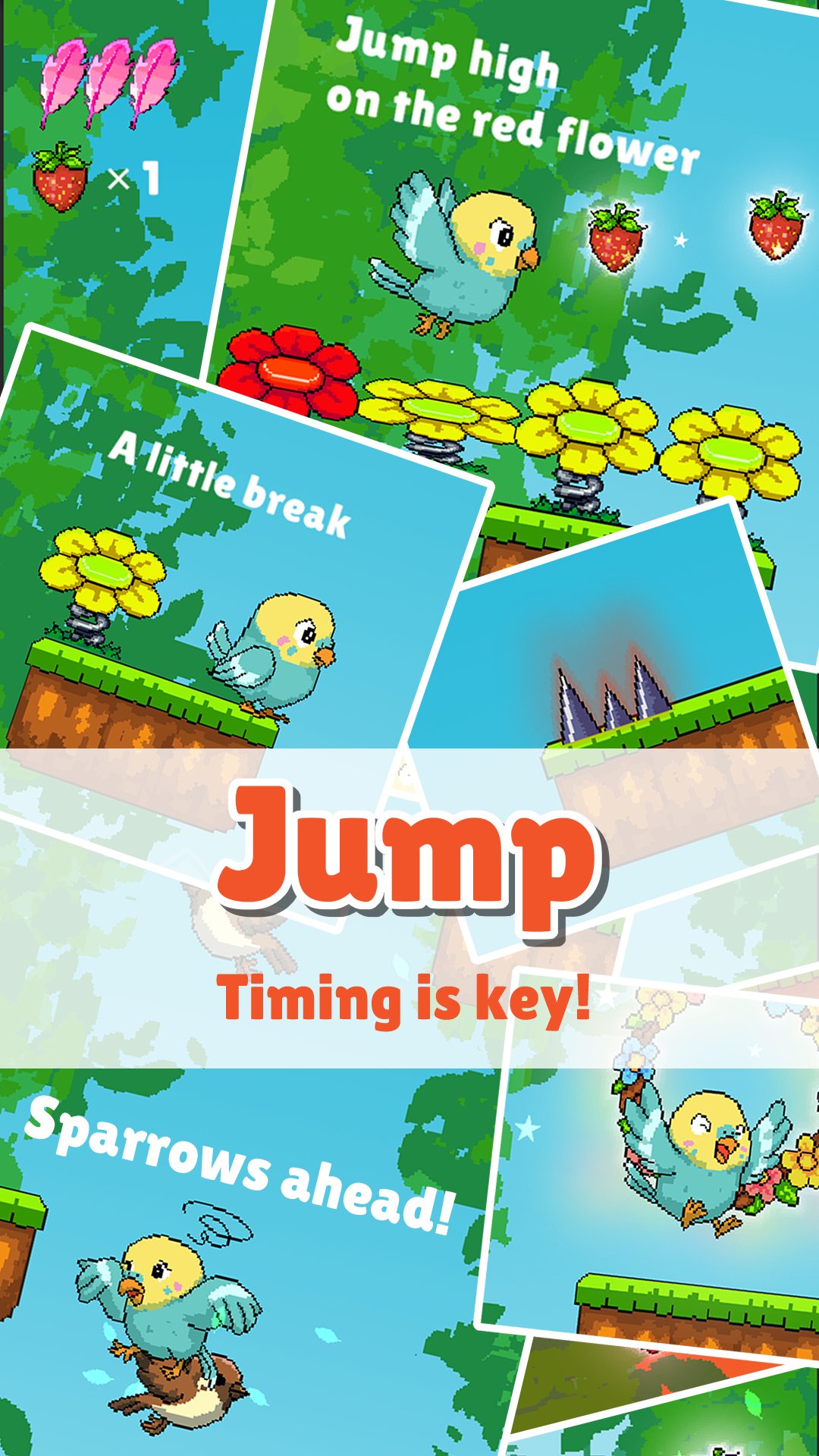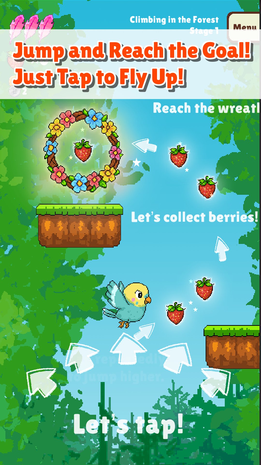 “Parakeet & Wind: Jump to Berry” is a soothing vertical jump action game with simple one-tap controls.