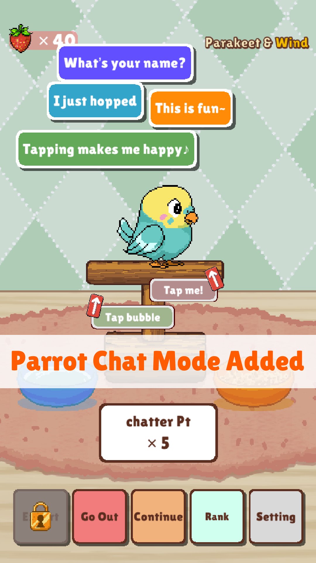 Spend relaxing time with your parakeet in the Room, using the berries you collect in the game.