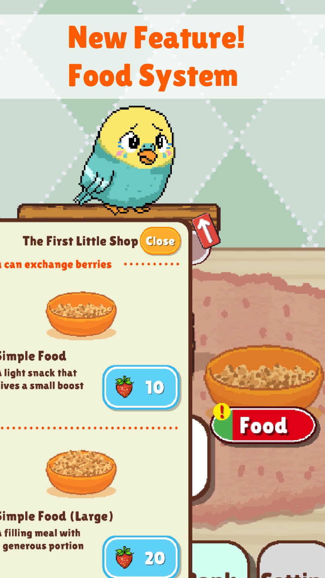 • Food System: Feed your bird and enjoy its adorable reactions.